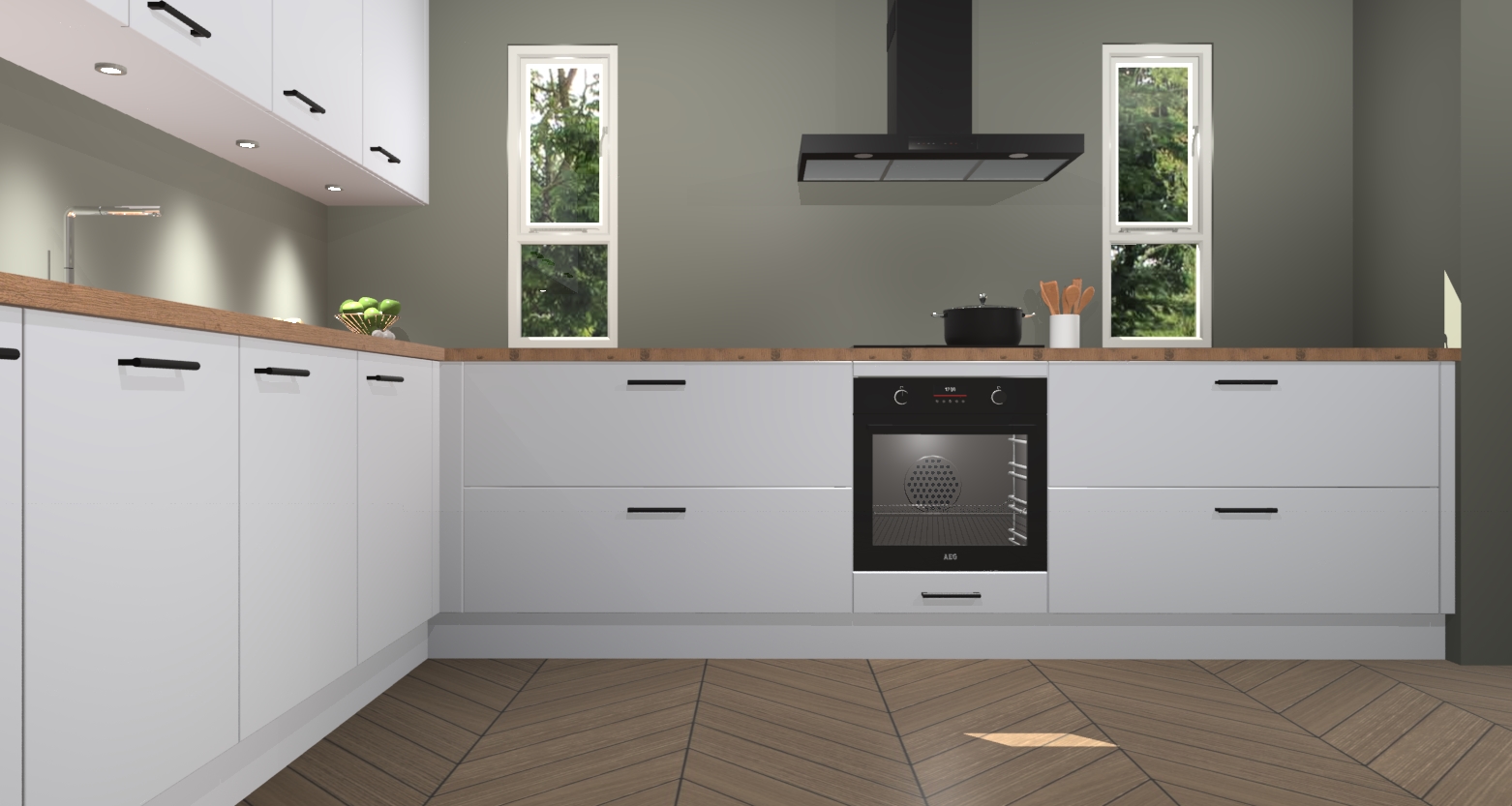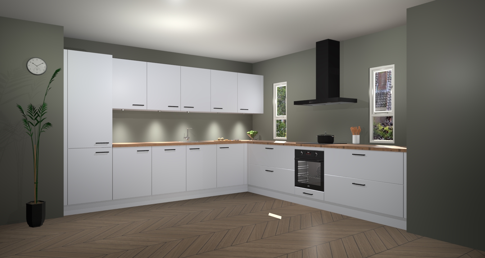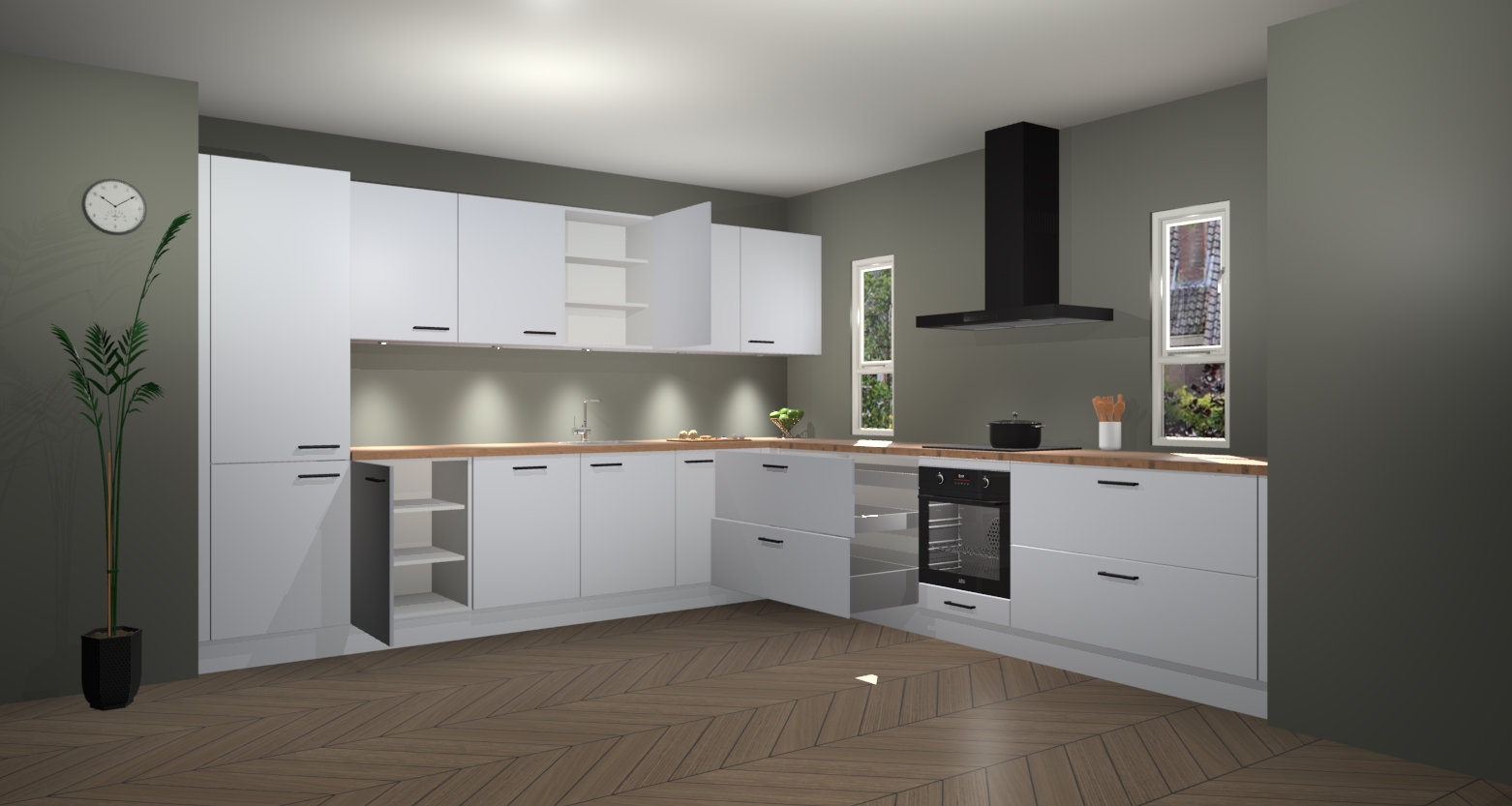De sneeuwwite keuken is een ideale hoekkeuken en heeft alle functies en apparatuur die u maar nodig kunt hebben. Bij de bestelling krijgt u een oven, inductiekookplaat, afzuigkap, vaatwasser en koelkast - deze kunnen desgewenst eenvoudig worden uitgebreid naar AEG na bestellen. Elke kast wordt ook voor gemonteerd geleverd met soft close deuren die jarenlang gebruik beloven. Stelt u zich voor dat u geen gedoe heeft met vervelende montage - vanaf het moment dat u uw bestelling plaats, duurt het slechts 7 weken voor het bij u thuis geleverd wordt.