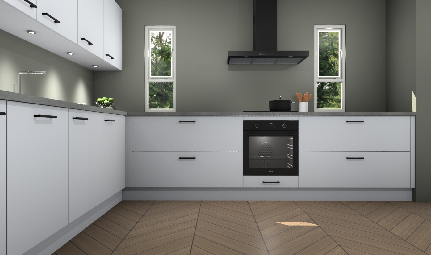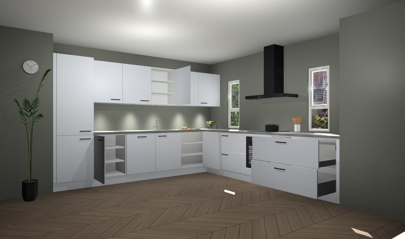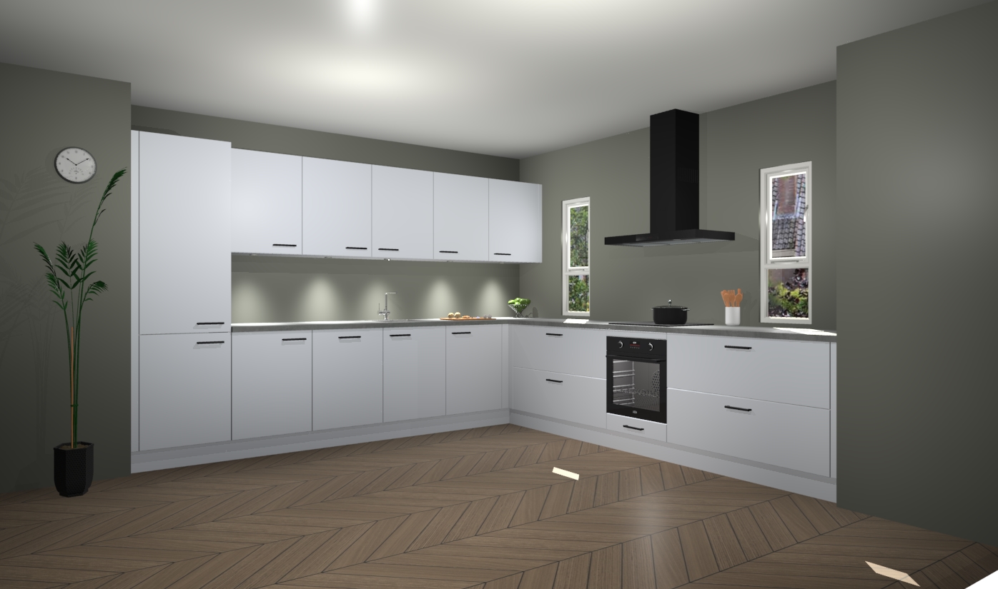 De sneeuwwite keuken is een ideale hoekkeuken en heeft alle functies en apparatuur die u maar nodig kunt hebben. Bij de bestelling krijgt u een oven, inductiekookplaat, afzuigkap, vaatwasser en koelkast - deze kunnen desgewenst eenvoudig worden uitgebreid naar AEG na bestellen. Elke kast wordt ook voor gemonteerd geleverd met soft close deuren die jarenlang gebruik beloven. Stelt u zich voor dat u geen gedoe heeft met vervelende montage - vanaf het moment dat u uw bestelling plaats, duurt het slechts 7 weken voor het bij u thuis geleverd wordt.