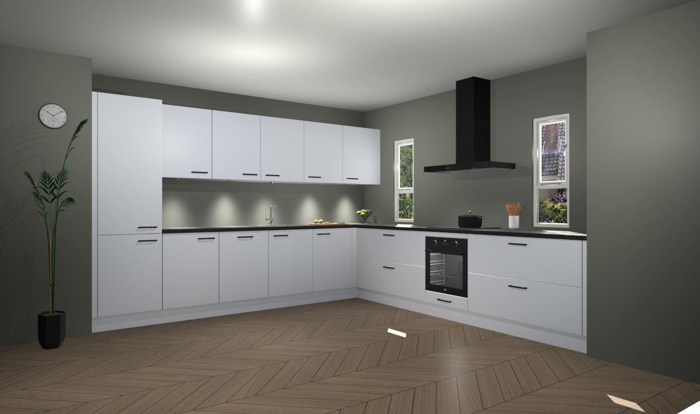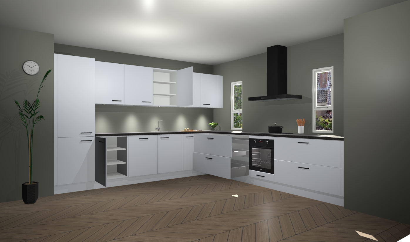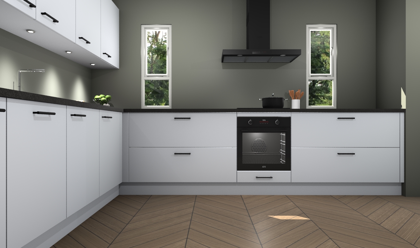 De sneeuwwite keuken is een ideale hoekkeuken en heeft alle functies en apparatuur die u maar nodig kunt hebben. Bij de bestelling krijgt u een oven, inductiekookplaat, afzuigkap, vaatwasser en koelkast - deze kunnen desgewenst eenvoudig worden uitgebreid naar AEG na bestellen. Elke kast wordt ook voor gemonteerd geleverd met soft close deuren die jarenlang gebruik beloven. Stelt u zich voor dat u geen gedoe heeft met vervelende montage - vanaf het moment dat u uw bestelling plaats, duurt het slechts 7 weken voor het bij u thuis geleverd wordt.