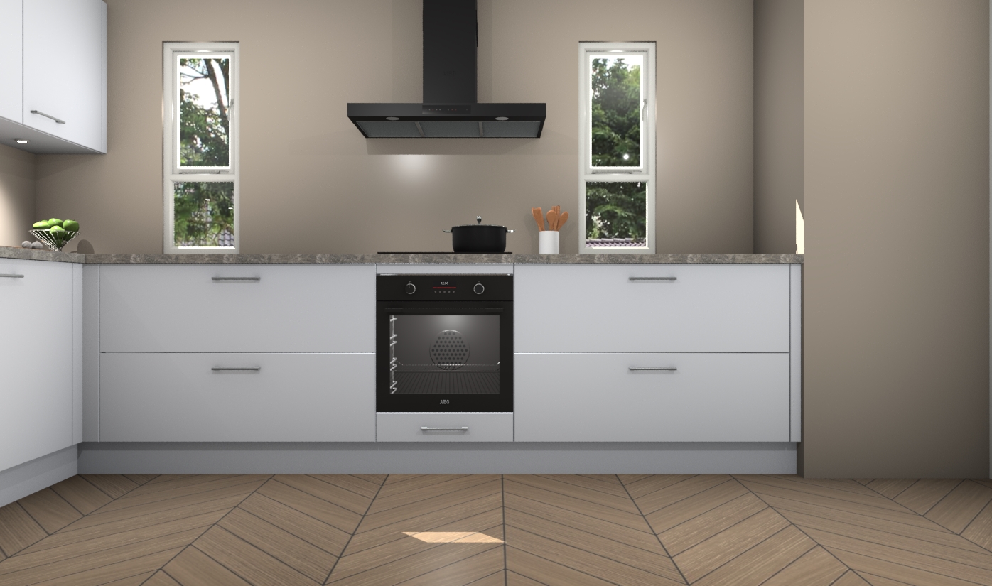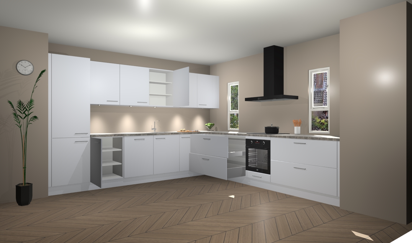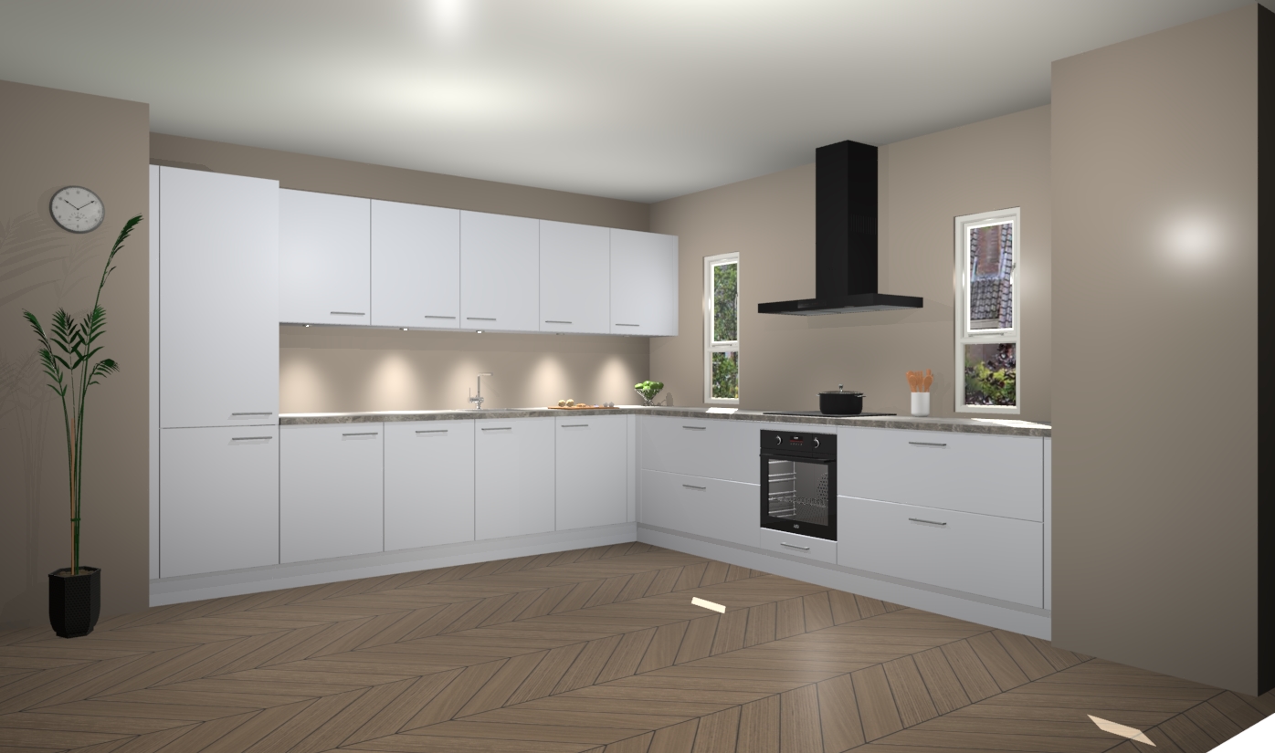 De sneeuwwite keuken is een ideale hoekkeuken en heeft alle functies en apparatuur die u maar nodig kunt hebben. Bij de bestelling krijgt u een oven, inductiekookplaat, afzuigkap, vaatwasser en koelkast - deze kunnen desgewenst eenvoudig worden uitgebreid naar AEG na bestellen. Elke kast wordt ook voor gemonteerd geleverd met soft close deuren die jarenlang gebruik beloven. Stelt u zich voor dat u geen gedoe heeft met vervelende montage - vanaf het moment dat u uw bestelling plaats, duurt het slechts 7 weken voor het bij u thuis geleverd wordt.