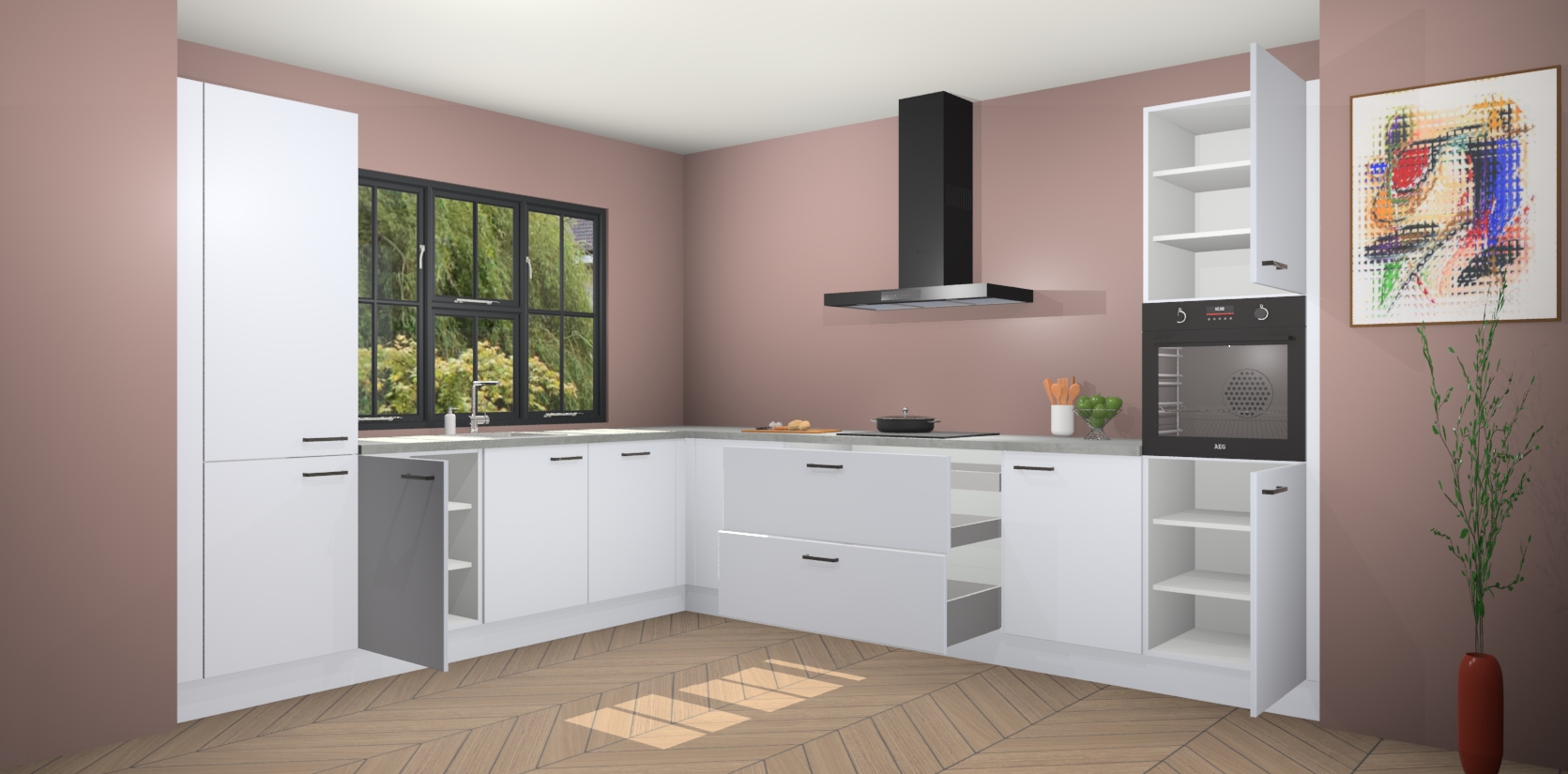 In deze box zijn alle kleuren verzameld van de deuren en werkbladen. Vraag de gratis kleurenbox aan en kijk thuis rustig verder!