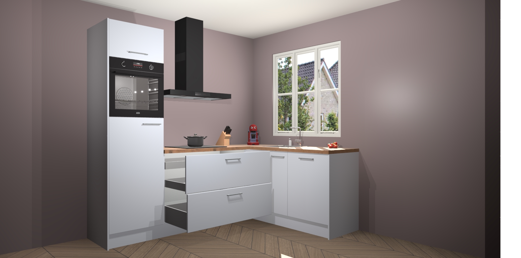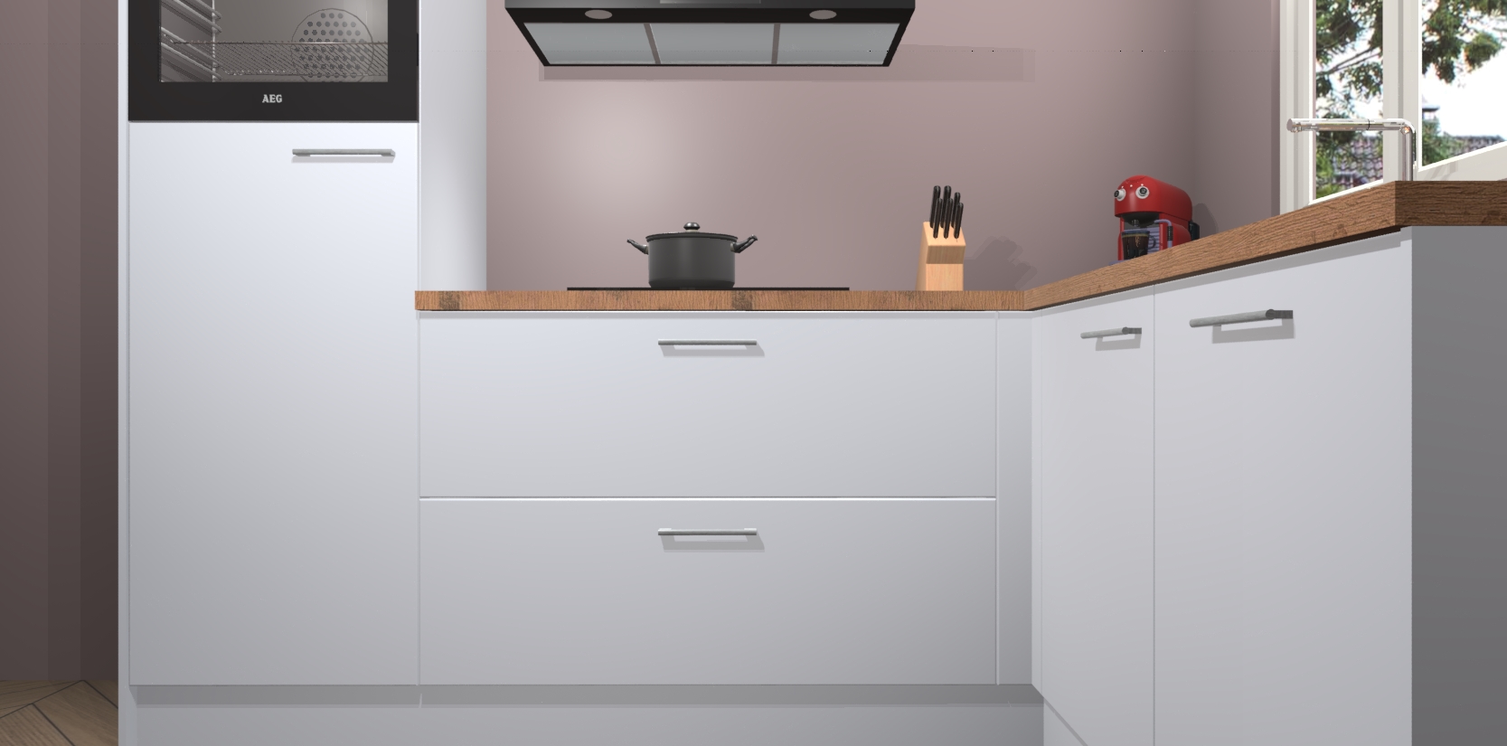 Dit model biedt u voldoende opbergruimte en vijf ingebouwde apparaten: een oven, inductiekookplaat, afzuigkap, vaatwasser en koelkast. Deze apparaten kunnen gemakkelijk worden geüpgrade naar AEG nadat u besteld heeft. De verschillende laden en kastjes bevatten softclose-deuren waardoor ze gezellig dichtvallen met een geruststellend helemaal geruisloos geluid. En dat is nog niet alles! We garanderen ook dat de prijs altijd laag blijft - dus haal nu uw Sneeuwwitte keuken Victoria terwijl het kan.