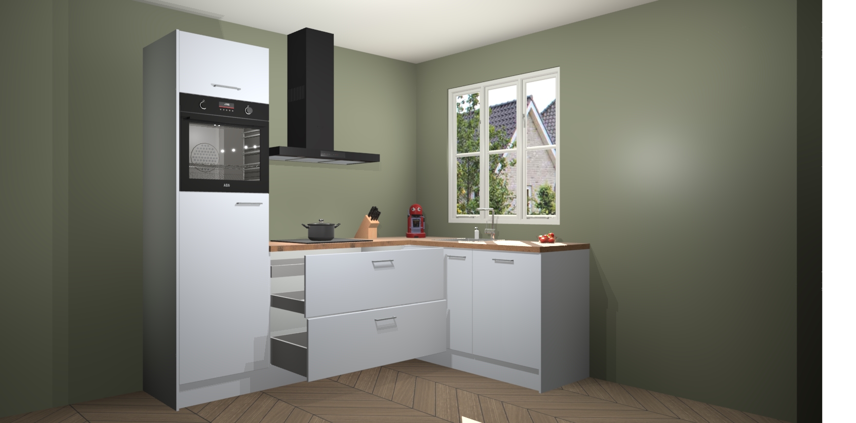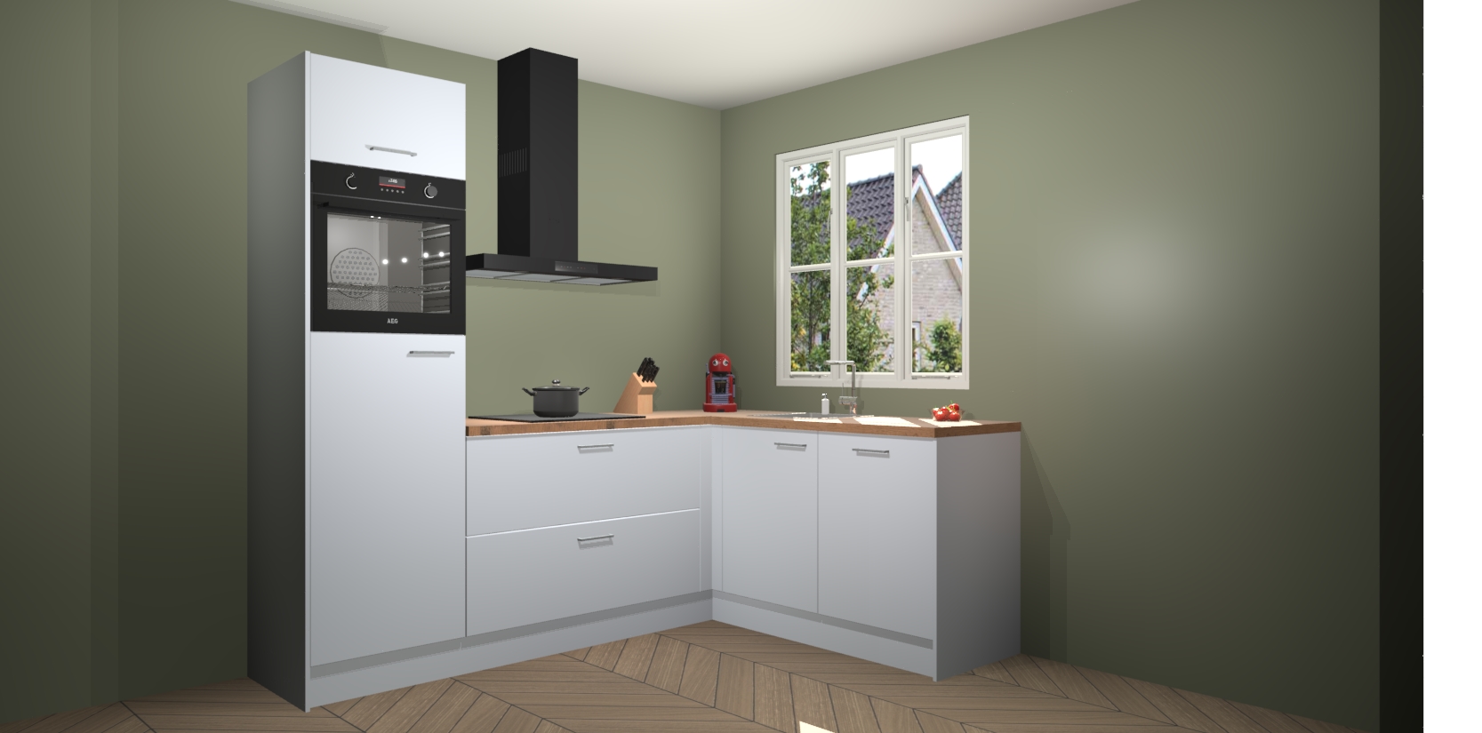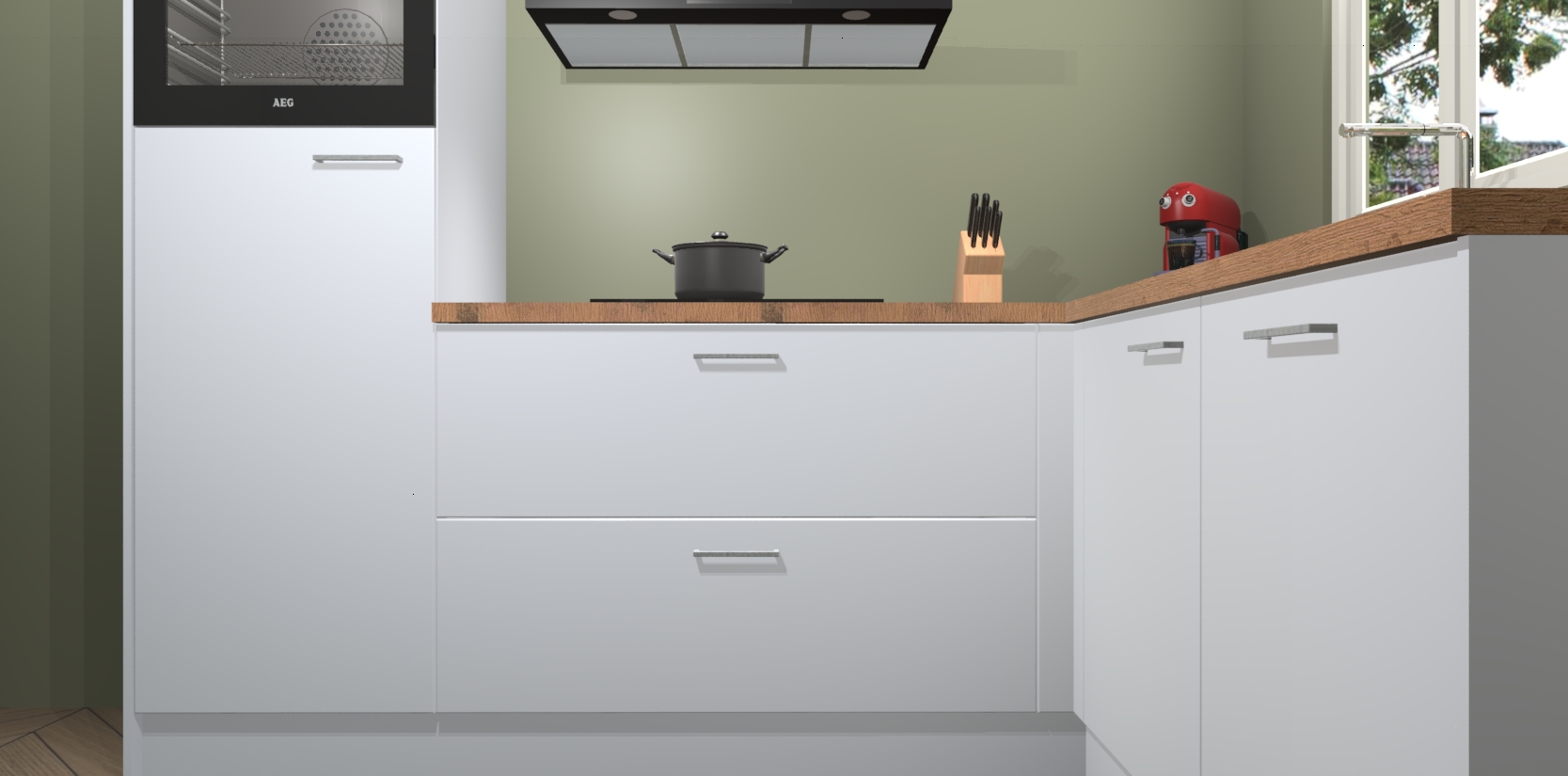 Dit model biedt u voldoende opbergruimte en vijf ingebouwde apparaten: een oven, inductiekookplaat, afzuigkap, vaatwasser en koelkast. Deze apparaten kunnen gemakkelijk worden geüpgrade naar AEG nadat u besteld heeft. De verschillende laden en kastjes bevatten softclose-deuren waardoor ze gezellig dichtvallen met een geruststellend helemaal geruisloos geluid. En dat is nog niet alles! We garanderen ook dat de prijs altijd laag blijft - dus haal nu uw Sneeuwwitte keuken Victoria terwijl het kan.
