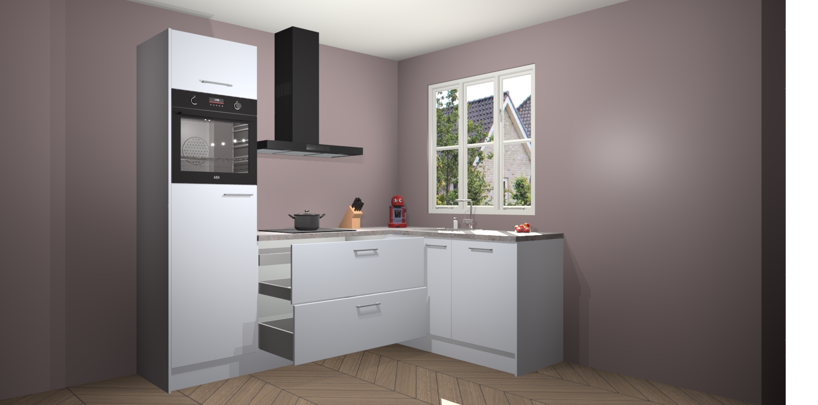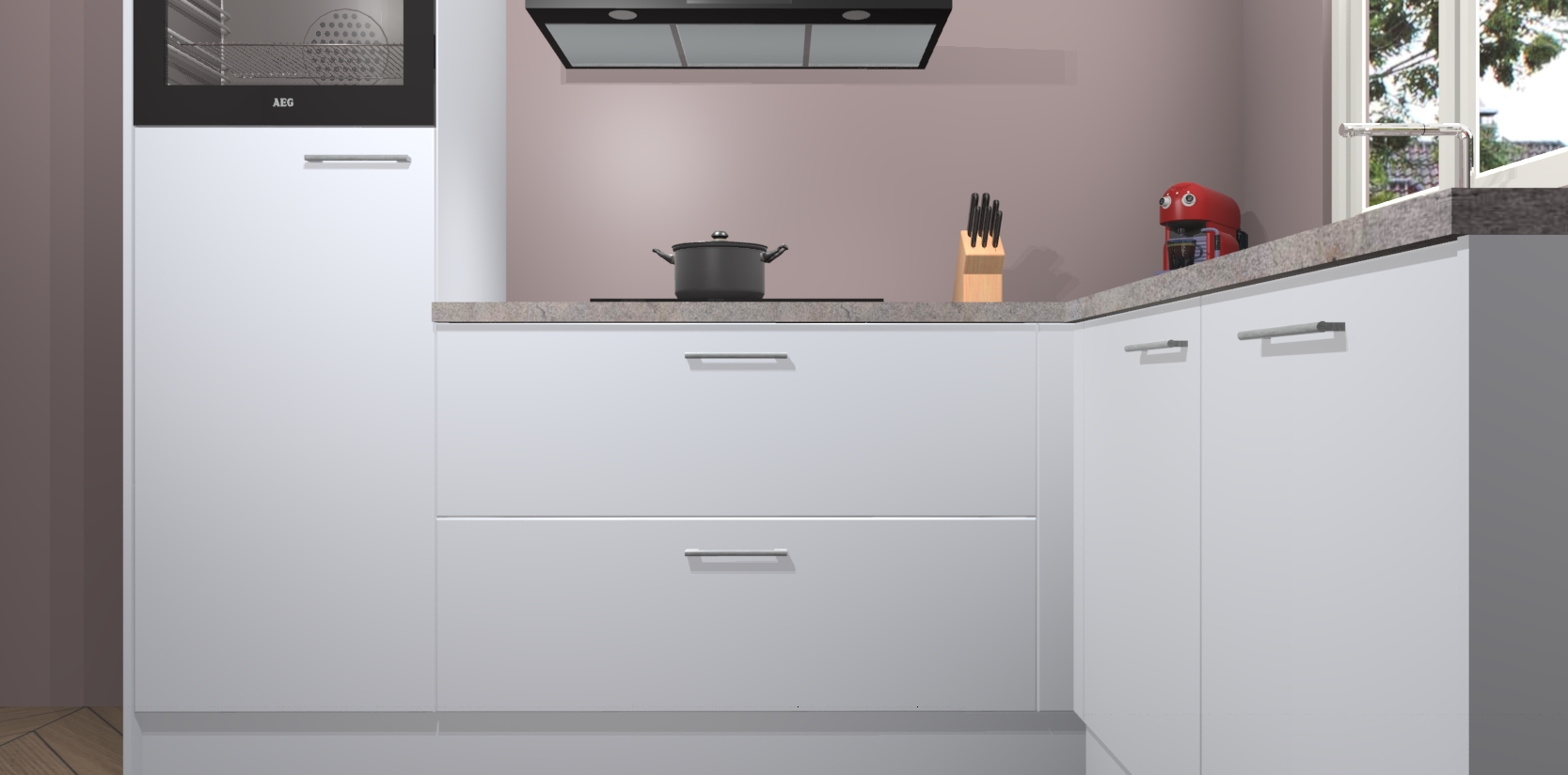 Dit model biedt u voldoende opbergruimte en vijf ingebouwde apparaten: een oven, inductiekookplaat, afzuigkap, vaatwasser en koelkast. Deze apparaten kunnen gemakkelijk worden geüpgrade naar AEG nadat u besteld heeft. De verschillende laden en kastjes bevatten softclose-deuren waardoor ze gezellig dichtvallen met een geruststellend helemaal geruisloos geluid. En dat is nog niet alles! We garanderen ook dat de prijs altijd laag blijft - dus haal nu uw Sneeuwwitte keuken Victoria terwijl het kan.