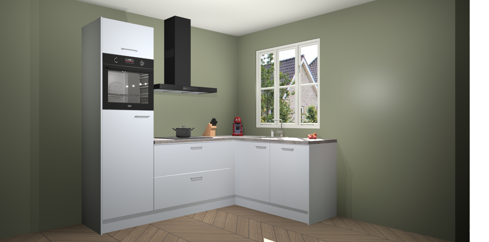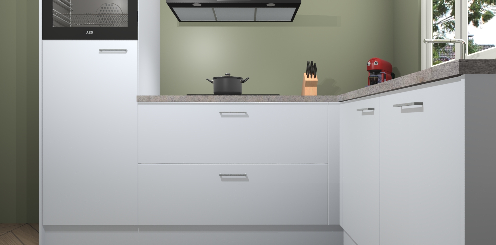 Dit model biedt u voldoende opbergruimte en vijf ingebouwde apparaten: een oven, inductiekookplaat, afzuigkap, vaatwasser en koelkast. Deze apparaten kunnen gemakkelijk worden geüpgrade naar AEG nadat u besteld heeft. De verschillende laden en kastjes bevatten softclose-deuren waardoor ze gezellig dichtvallen met een geruststellend helemaal geruisloos geluid. En dat is nog niet alles! We garanderen ook dat de prijs altijd laag blijft - dus haal nu uw Sneeuwwitte keuken Victoria terwijl het kan.