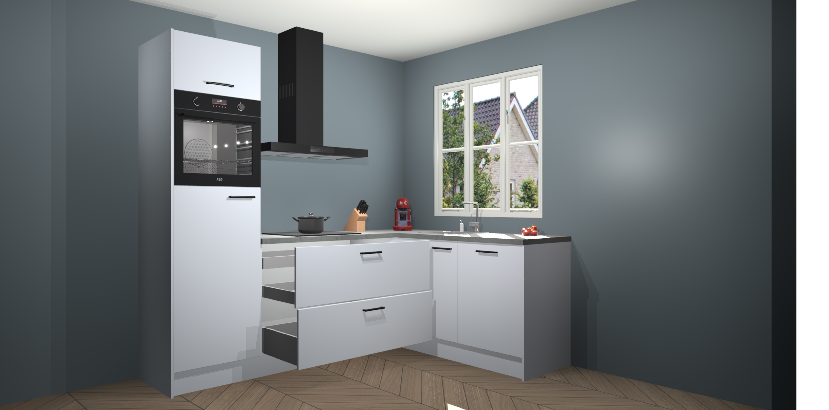 Dit model biedt u voldoende opbergruimte en vijf ingebouwde apparaten: een oven, inductiekookplaat, afzuigkap, vaatwasser en koelkast. Deze apparaten kunnen gemakkelijk worden geüpgrade naar AEG nadat u besteld heeft. De verschillende laden en kastjes bevatten softclose-deuren waardoor ze gezellig dichtvallen met een geruststellend helemaal geruisloos geluid. En dat is nog niet alles! We garanderen ook dat de prijs altijd laag blijft - dus haal nu uw Sneeuwwitte keuken Victoria terwijl het kan.