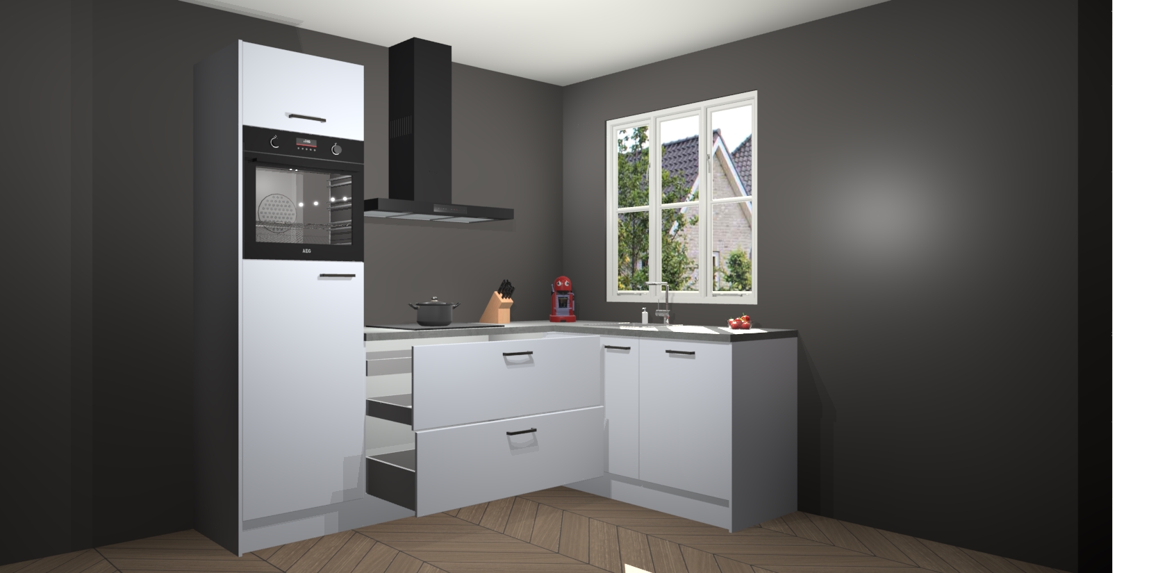 Dit model biedt u voldoende opbergruimte en vijf ingebouwde apparaten: een oven, inductiekookplaat, afzuigkap, vaatwasser en koelkast. Deze apparaten kunnen gemakkelijk worden geüpgrade naar AEG nadat u besteld heeft. De verschillende laden en kastjes bevatten softclose-deuren waardoor ze gezellig dichtvallen met een geruststellend helemaal geruisloos geluid. En dat is nog niet alles! We garanderen ook dat de prijs altijd laag blijft - dus haal nu uw Sneeuwwitte keuken Victoria terwijl het kan.