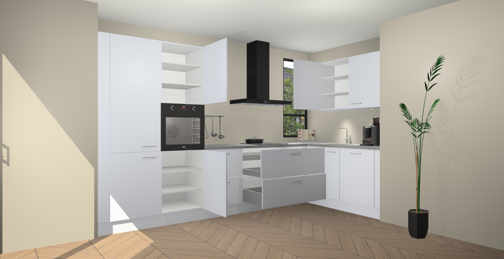 Welkom in uw nieuwe moderne keuken! Laat ons u voorstellen aan de Sneeuwwitte keuken Vlaanderen . Deze prachtige hoekkeuken straalt exclusiviteit en luxe uit als geen ander. Het strakke design, de tijdloze kleuren en het model maken van deze keuken een moderne klassieker. En met voldoende opbergruimte heeft deze keuken echt voor ieder wat wils.
