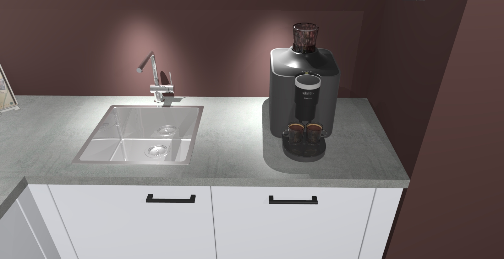 - De spoelbak is nog niet in gevreesd. Dit dient tijdens het werk gedaan te worden