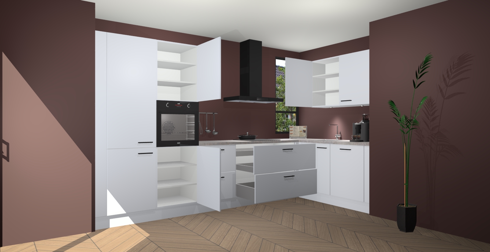 Welkom in uw nieuwe moderne keuken! Laat ons u voorstellen aan de Sneeuwwitte keuken Vlaanderen . Deze prachtige hoekkeuken straalt exclusiviteit en luxe uit als geen ander. Het strakke design, de tijdloze kleuren en het model maken van deze keuken een moderne klassieker. En met voldoende opbergruimte heeft deze keuken echt voor ieder wat wils.