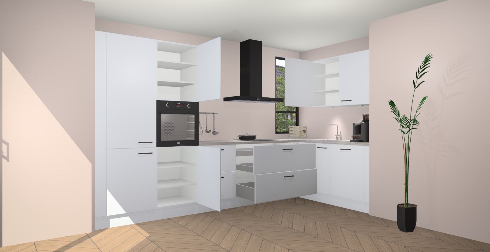 Welkom in uw nieuwe moderne keuken! Laat ons u voorstellen aan de Sneeuwwitte keuken Vlaanderen . Deze prachtige hoekkeuken straalt exclusiviteit en luxe uit als geen ander. Het strakke design, de tijdloze kleuren en het model maken van deze keuken een moderne klassieker. En met voldoende opbergruimte heeft deze keuken echt voor ieder wat wils.