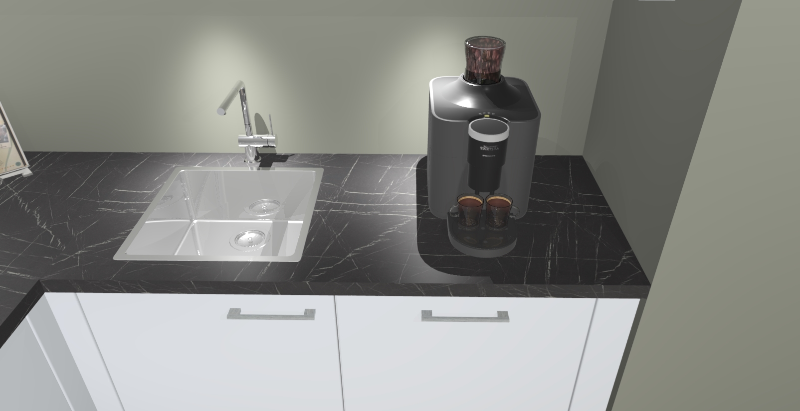 - De spoelbak is nog niet in gevreesd. Dit dient tijdens het werk gedaan te worden
