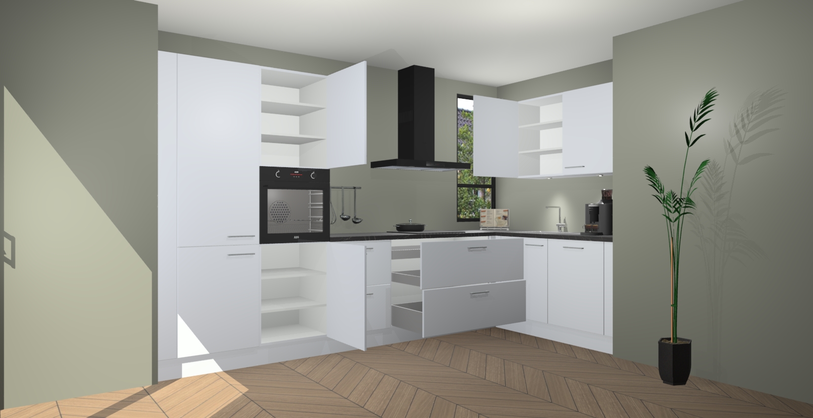 Welkom in uw nieuwe moderne keuken! Laat ons u voorstellen aan de Sneeuwwitte keuken Vlaanderen . Deze prachtige hoekkeuken straalt exclusiviteit en luxe uit als geen ander. Het strakke design, de tijdloze kleuren en het model maken van deze keuken een moderne klassieker. En met voldoende opbergruimte heeft deze keuken echt voor ieder wat wils.