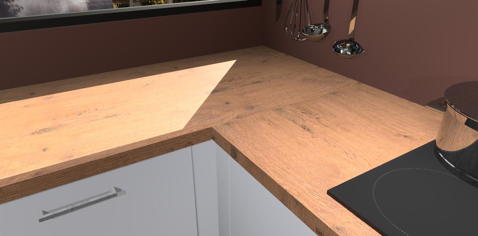 - Bij een hoekwerkblad zijn de hoeken in gevreesd en op maat gemaakt