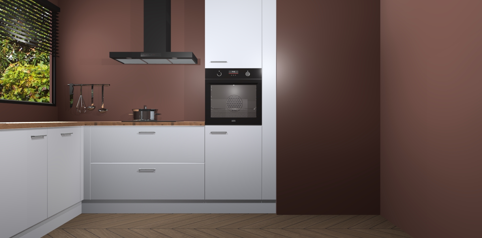 Met een modern, tijdloos design en ruime opslagruimte, zult u zich in no-time thuis voelen in uw nieuwe keuken. Uw leven wordt eenvoudiger met de soft-close deuren die voor het ultieme stille comfort zorgen - geen geluid dat u stoort terwijl u kookt. Ook is de keuken voorzien van 5 ingebouwde apparaten: een oven, inductie kookplaat, afzuigkap, vaatwasser en koelkast. Deze kunnen gemakkelijk na bestelling worden bijgewerkt naar AEG - waardoor uw luxe ervaring compleet is.