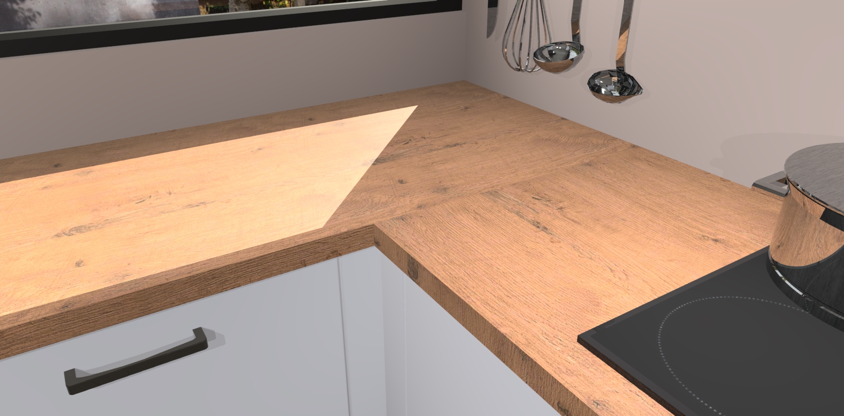- Bij een hoekwerkblad zijn de hoeken in gevreesd en op maat gemaakt