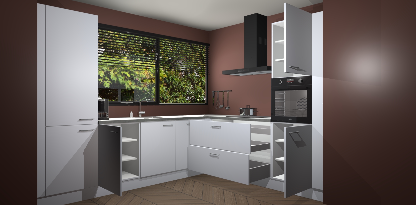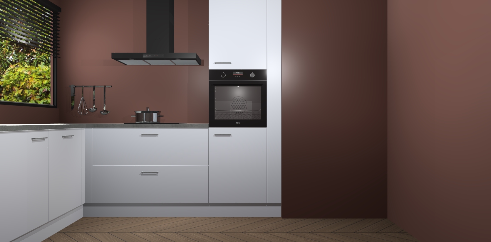 Met een modern, tijdloos design en ruime opslagruimte, zult u zich in no-time thuis voelen in uw nieuwe keuken. Uw leven wordt eenvoudiger met de soft-close deuren die voor het ultieme stille comfort zorgen - geen geluid dat u stoort terwijl u kookt. Ook is de keuken voorzien van 5 ingebouwde apparaten: een oven, inductie kookplaat, afzuigkap, vaatwasser en koelkast. Deze kunnen gemakkelijk na bestelling worden bijgewerkt naar AEG - waardoor uw luxe ervaring compleet is.