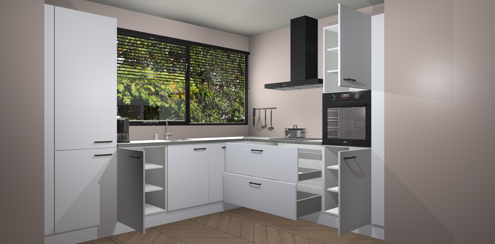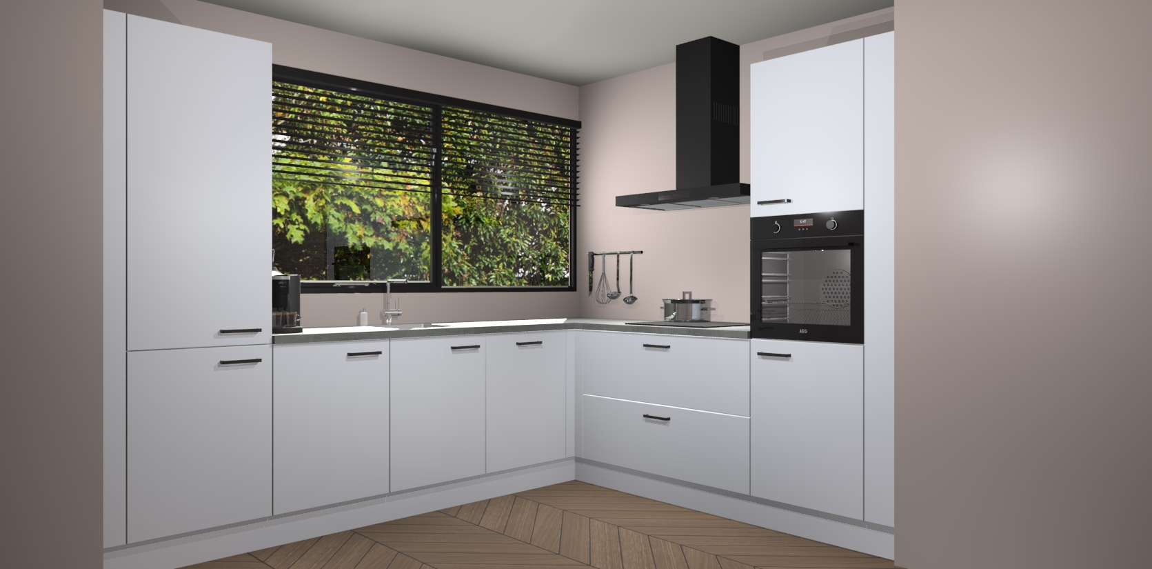 Met een modern, tijdloos design en ruime opslagruimte, zult u zich in no-time thuis voelen in uw nieuwe keuken. Uw leven wordt eenvoudiger met de soft-close deuren die voor het ultieme stille comfort zorgen - geen geluid dat u stoort terwijl u kookt. Ook is de keuken voorzien van 5 ingebouwde apparaten: een oven, inductie kookplaat, afzuigkap, vaatwasser en koelkast. Deze kunnen gemakkelijk na bestelling worden bijgewerkt naar AEG - waardoor uw luxe ervaring compleet is.