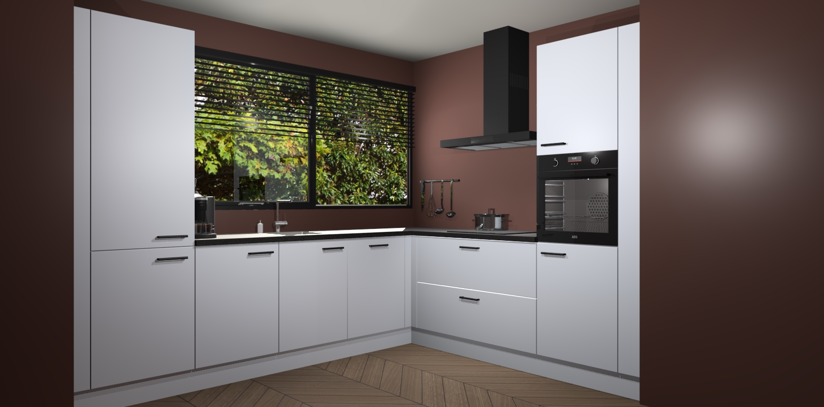 Met een modern, tijdloos design en ruime opslagruimte, zult u zich in no-time thuis voelen in uw nieuwe keuken. Uw leven wordt eenvoudiger met de soft-close deuren die voor het ultieme stille comfort zorgen - geen geluid dat u stoort terwijl u kookt. Ook is de keuken voorzien van 5 ingebouwde apparaten: een oven, inductie kookplaat, afzuigkap, vaatwasser en koelkast. Deze kunnen gemakkelijk na bestelling worden bijgewerkt naar AEG - waardoor uw luxe ervaring compleet is.