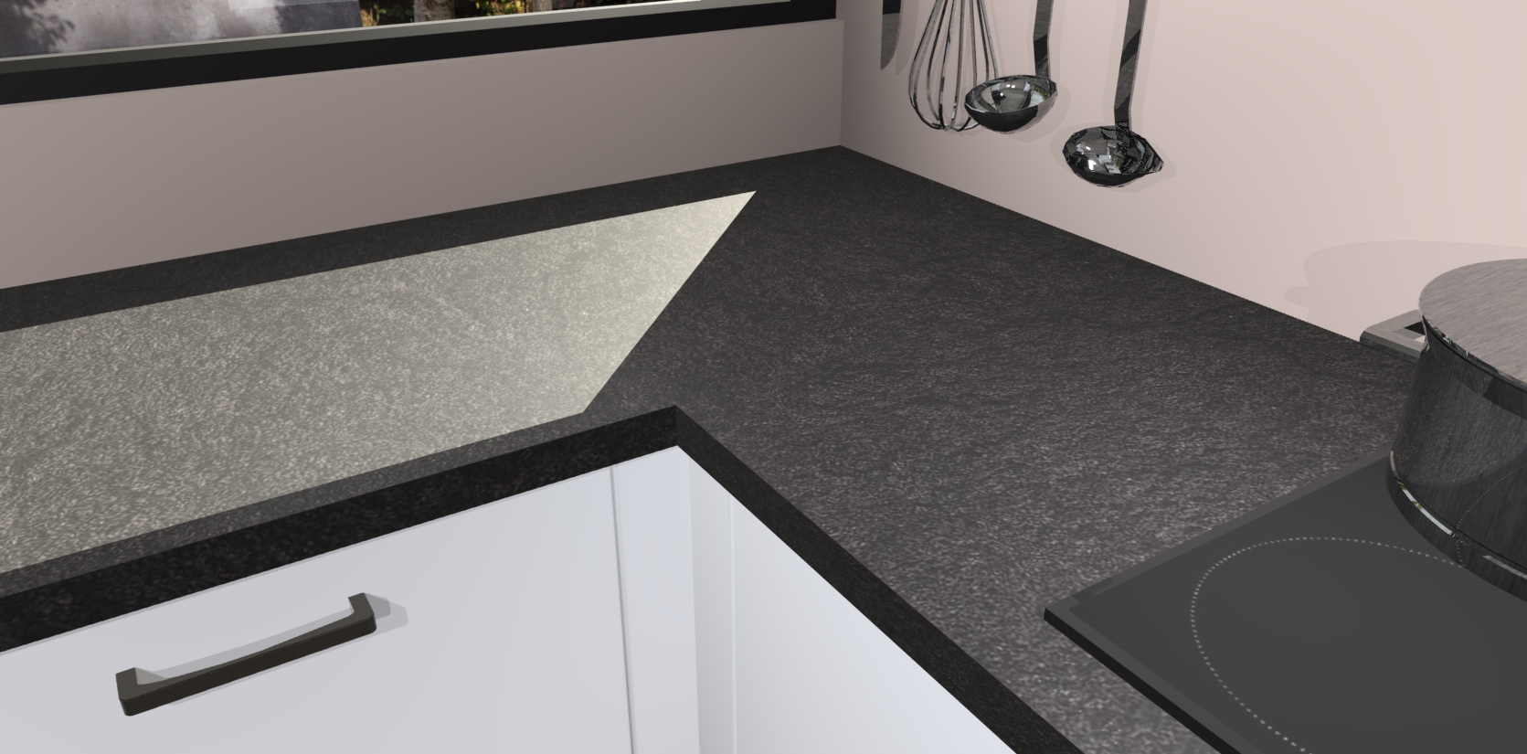 - Bij een hoekwerkblad zijn de hoeken in gevreesd en op maat gemaakt