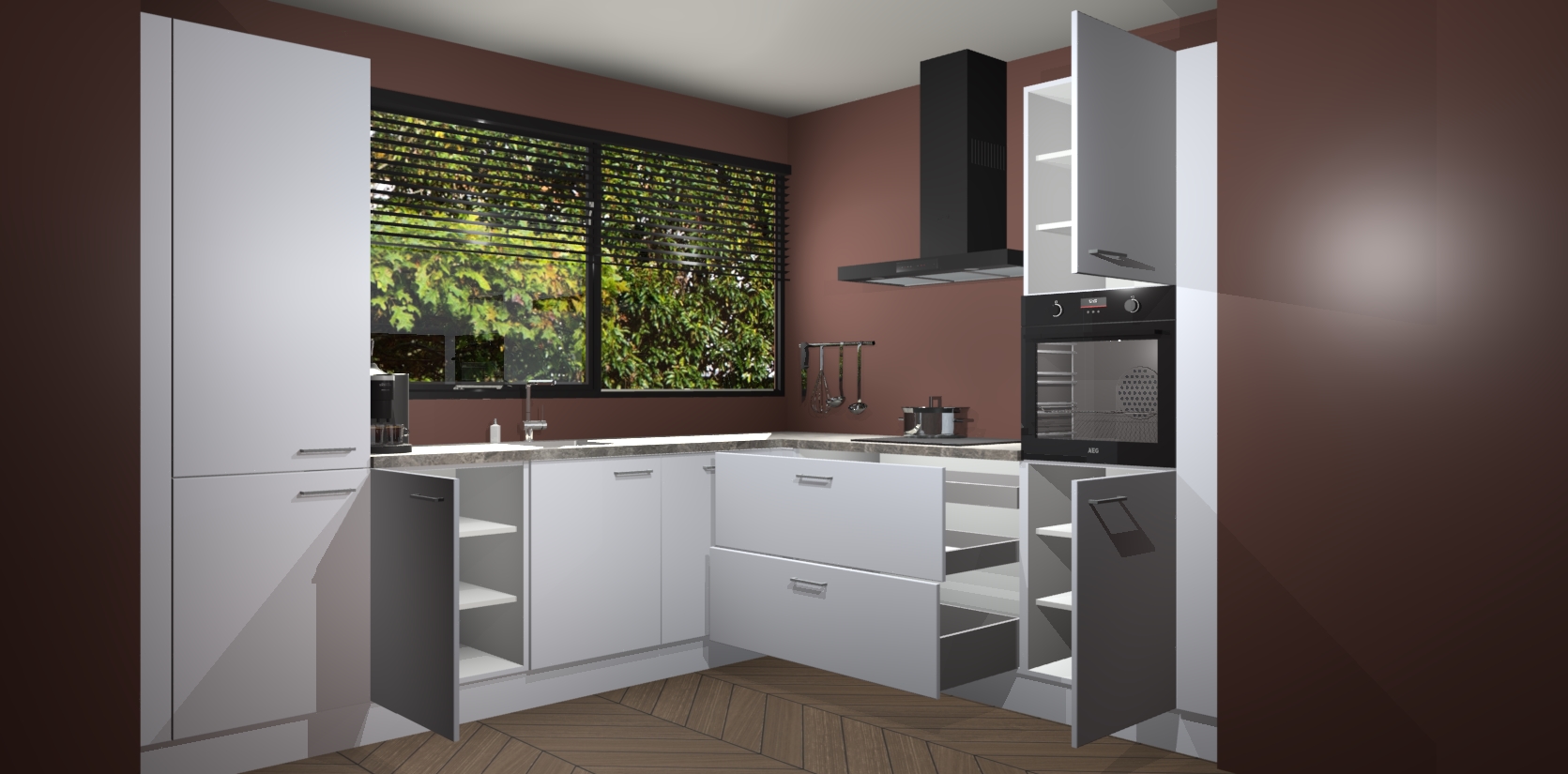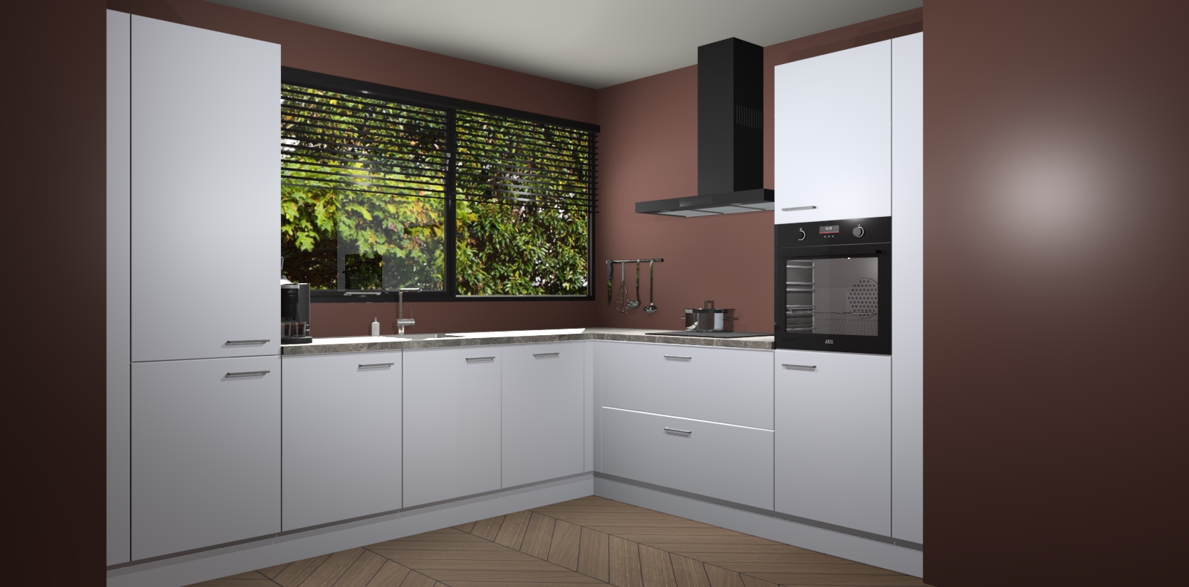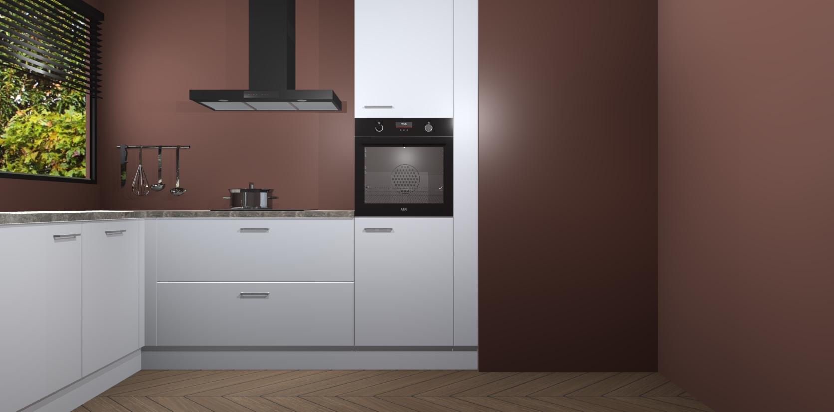 Met een modern, tijdloos design en ruime opslagruimte, zult u zich in no-time thuis voelen in uw nieuwe keuken. Uw leven wordt eenvoudiger met de soft-close deuren die voor het ultieme stille comfort zorgen - geen geluid dat u stoort terwijl u kookt. Ook is de keuken voorzien van 5 ingebouwde apparaten: een oven, inductie kookplaat, afzuigkap, vaatwasser en koelkast. Deze kunnen gemakkelijk na bestelling worden bijgewerkt naar AEG - waardoor uw luxe ervaring compleet is.