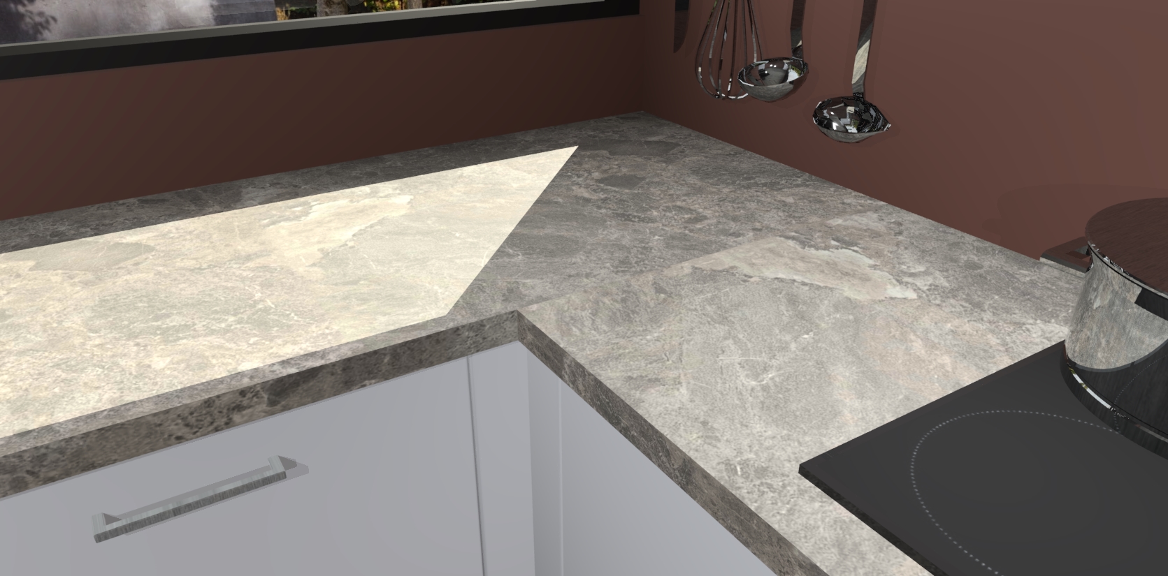 • Bij een hoekwerkblad zijn de hoeken in gevreesd en op maat gemaakt