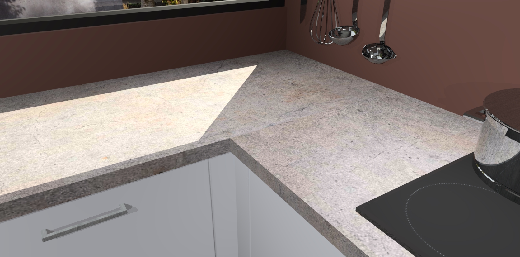 - Bij een hoekwerkblad zijn de hoeken in gevreesd en op maat gemaakt