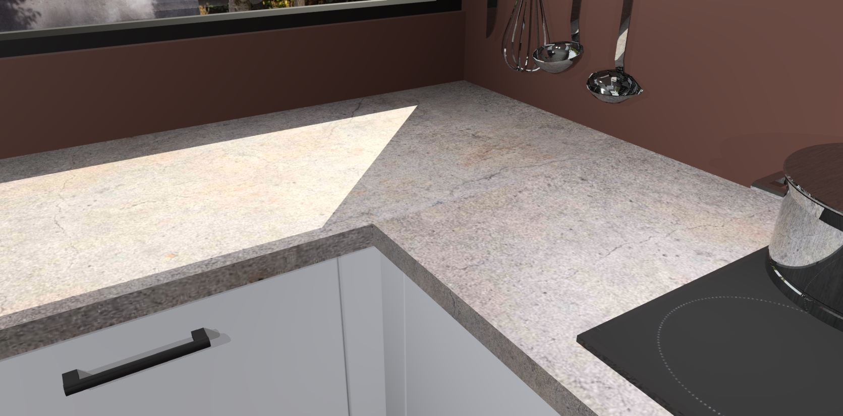 - Bij een hoekwerkblad zijn de hoeken in gevreesd en op maat gemaakt