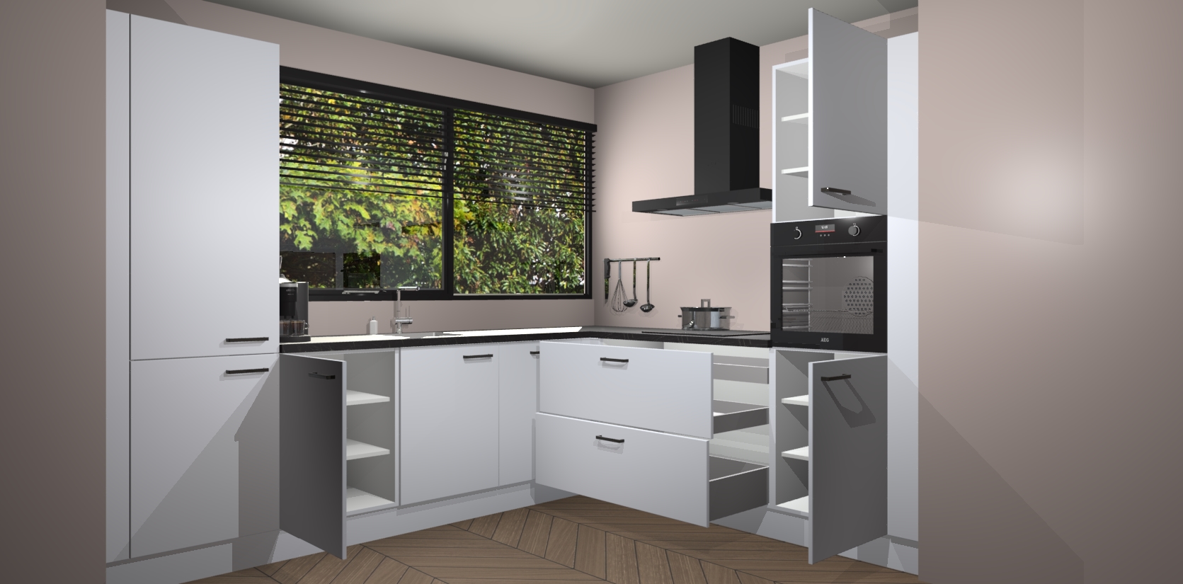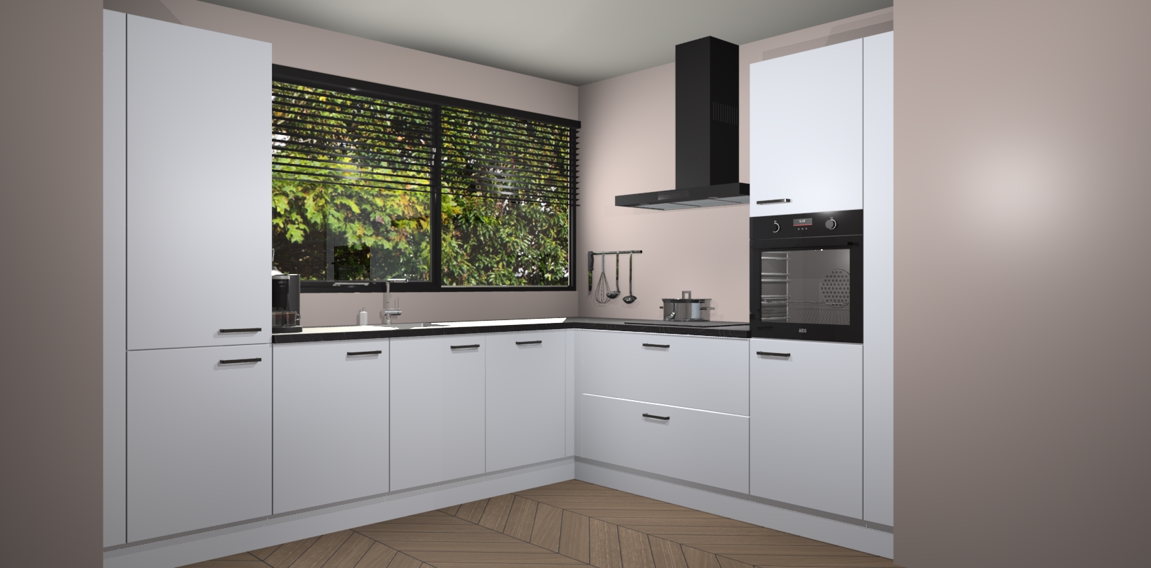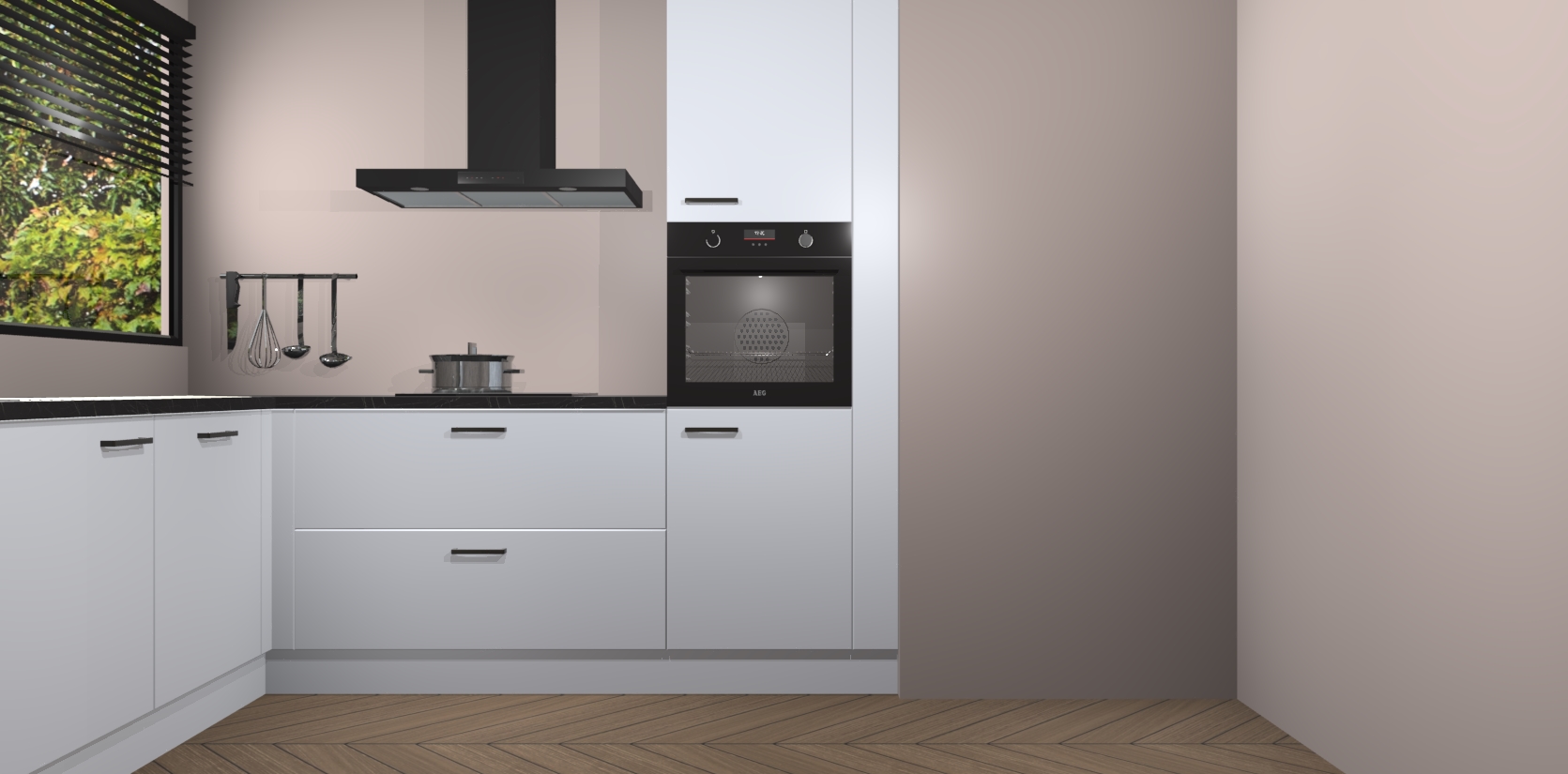 Met een modern, tijdloos design en ruime opslagruimte, zult u zich in no-time thuis voelen in uw nieuwe keuken. Uw leven wordt eenvoudiger met de soft-close deuren die voor het ultieme stille comfort zorgen - geen geluid dat u stoort terwijl u kookt. Ook is de keuken voorzien van 5 ingebouwde apparaten: een oven, inductie kookplaat, afzuigkap, vaatwasser en koelkast. Deze kunnen gemakkelijk na bestelling worden bijgewerkt naar AEG - waardoor uw luxe ervaring compleet is.