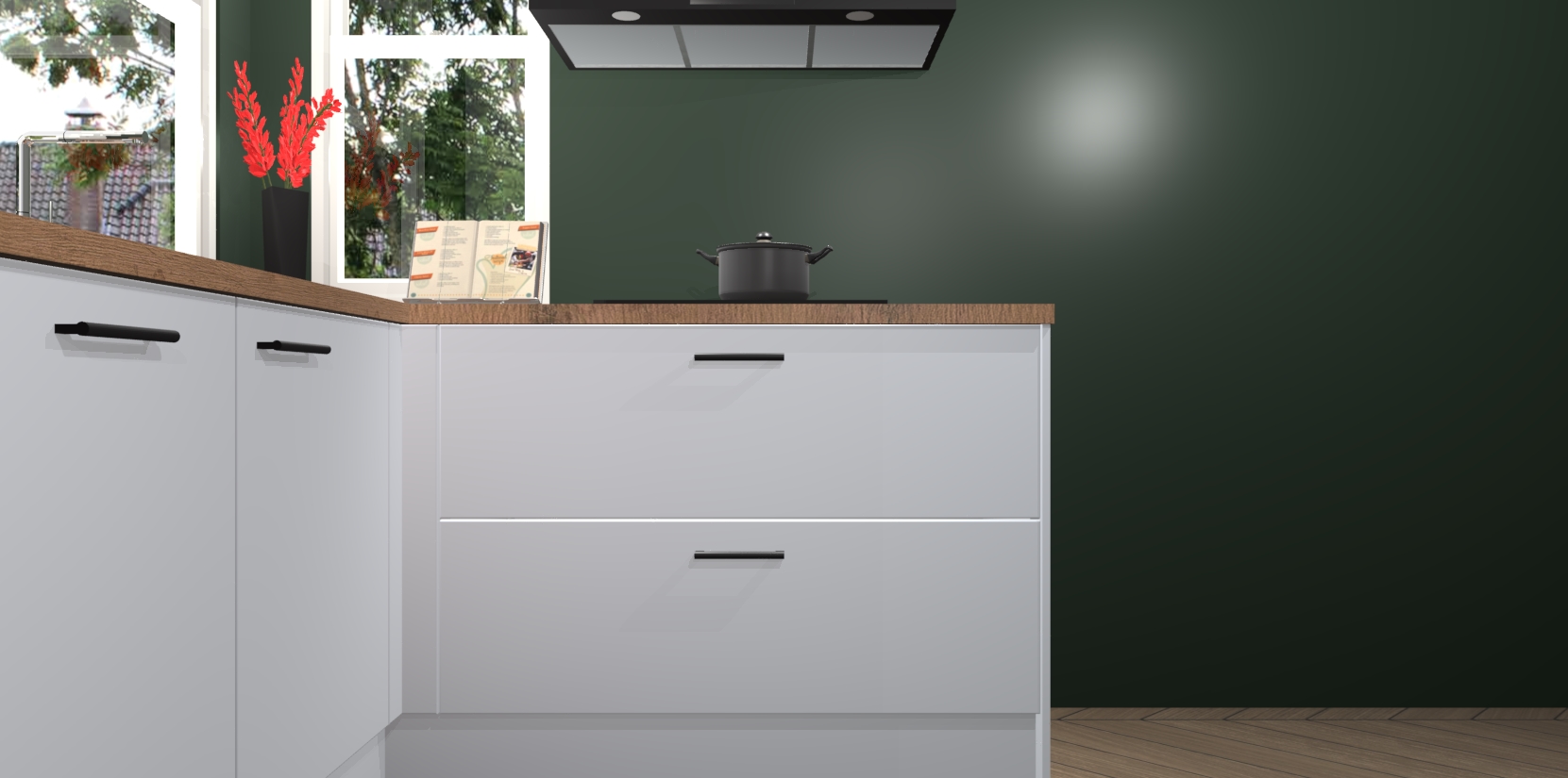 In deze box zijn alle kleuren verzameld van de deuren en werkbladen. Vraag de gratis kleurenbox aan en kijk thuis rustig verder!
