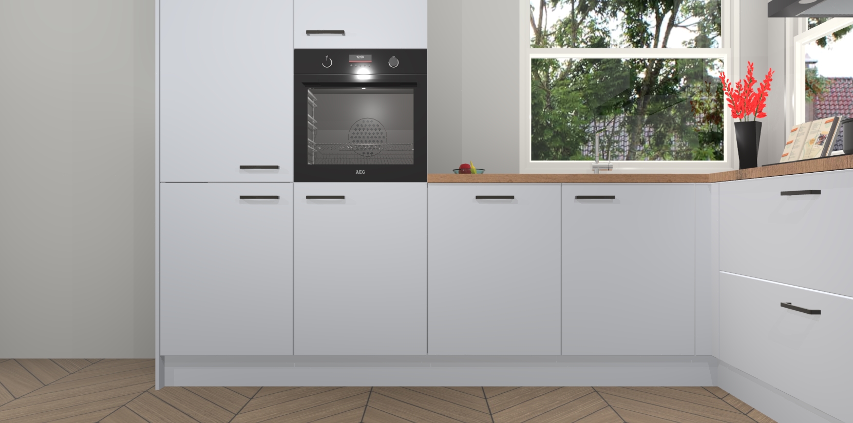 Elke Sneeuwwitte keuken Kotor wordt compleet geleverd met vijf inbouwapparaten, waaronder een oven, inductiekookplaat, afzuigkap, vaatwasser en koelkast. Sterker nog - indien gewenst kunt u deze apparaten na bestelling eenvoudig upgraden naar AEG! Extra functies zijn onder andere soft close deuren voor extra gemak, en elke kast wordt voor gemonteerd geleverd zodat u sneller van uw nieuwe keuken kunt genieten.