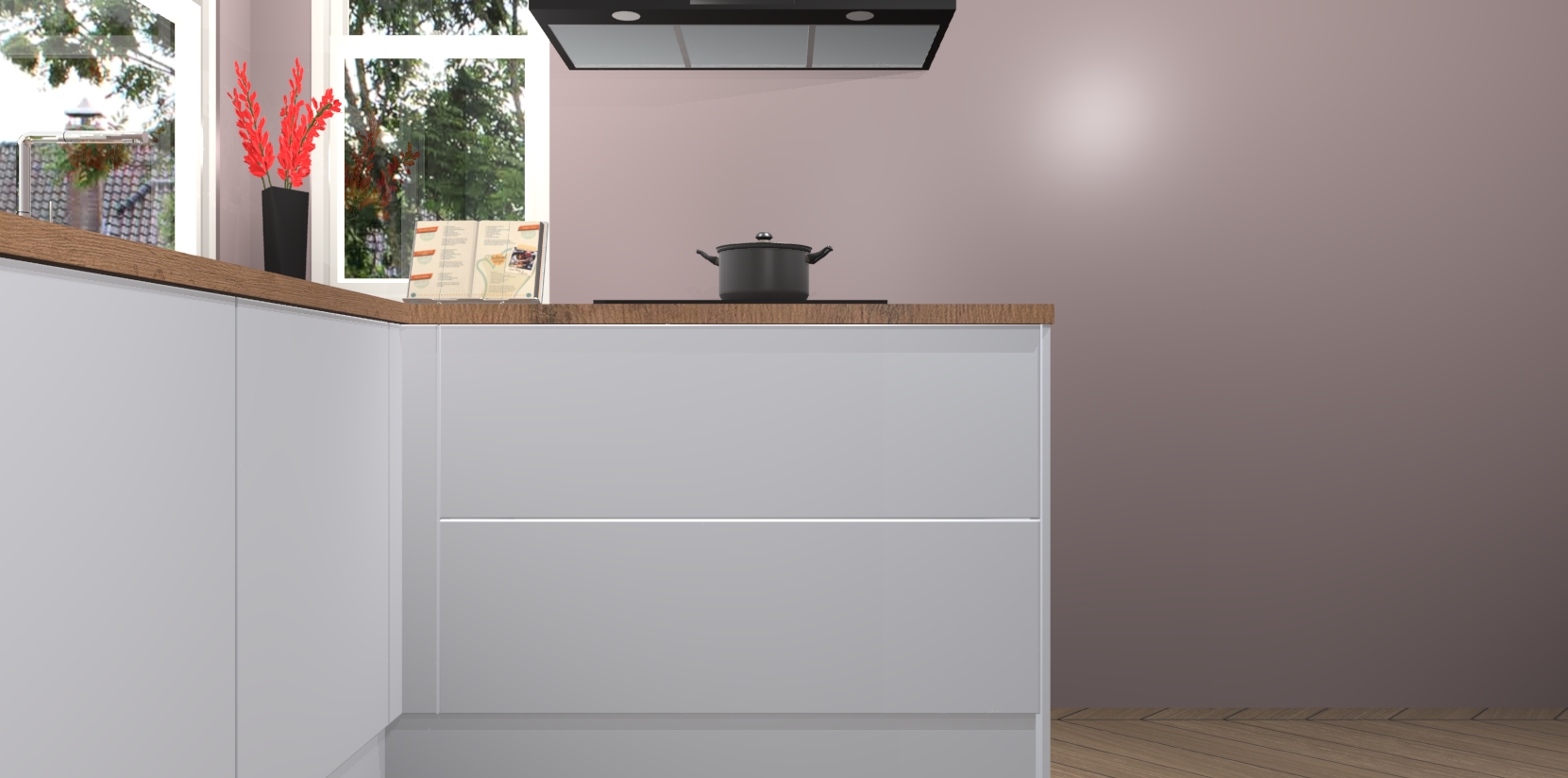 In deze box zijn alle kleuren verzameld van de deuren en werkbladen. Vraag de gratis kleurenbox aan en kijk thuis rustig verder!