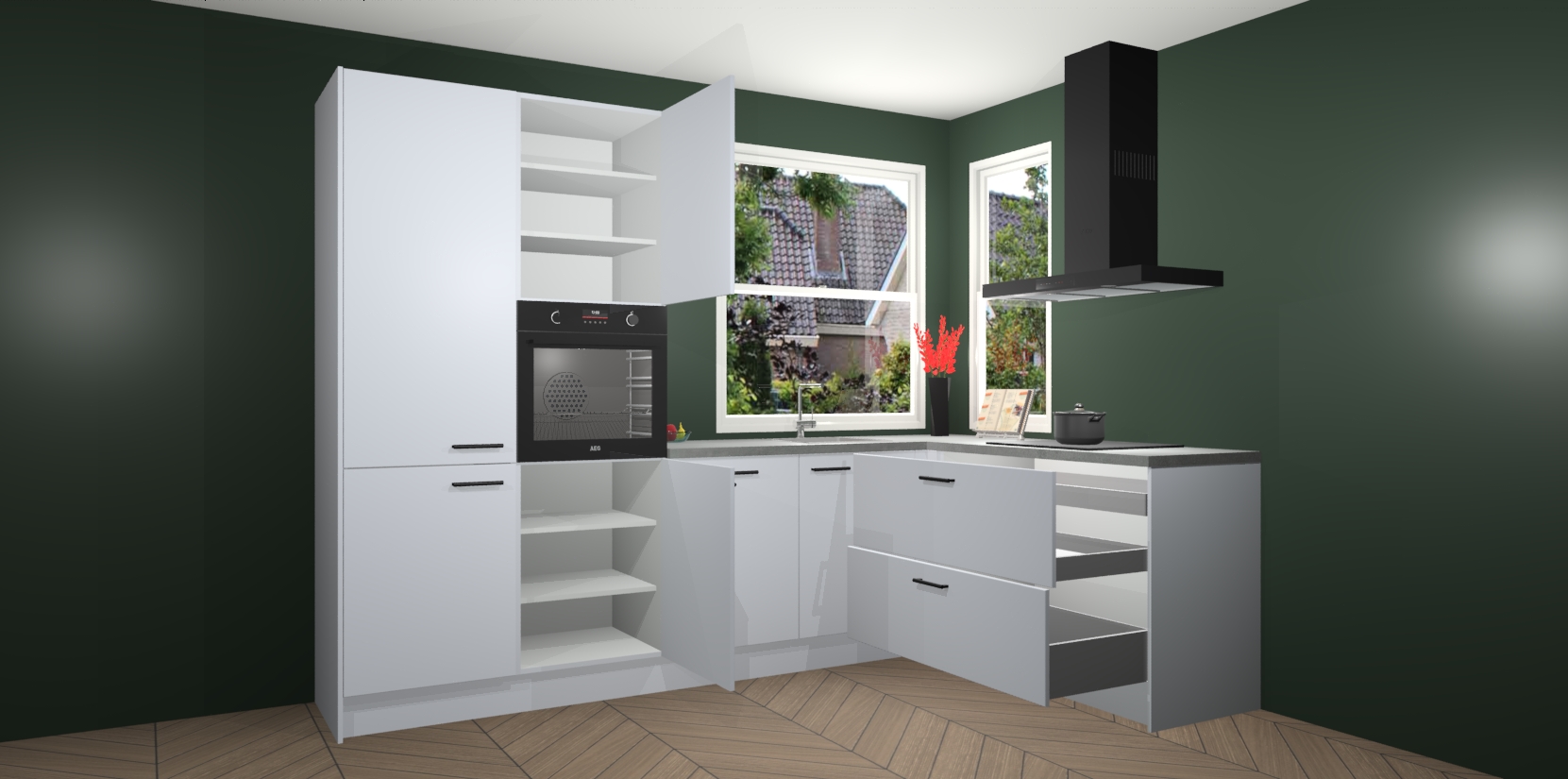 Het is tijd om halsoverkop verliefd te worden op uw droomkeuken, en de Sneeuwwitte keuken Kotor is precies wat u nodig heeft! Met een moderne, tijdloze constructie en een mix van prachtig design zal deze luxe hoekkeuken zeker opvallen. Maar laat de schoonheid u niet afleiden van de indrukwekkende functies - want onder dit alles schuilt een onovertroffen hoeveelheid lekkers!
