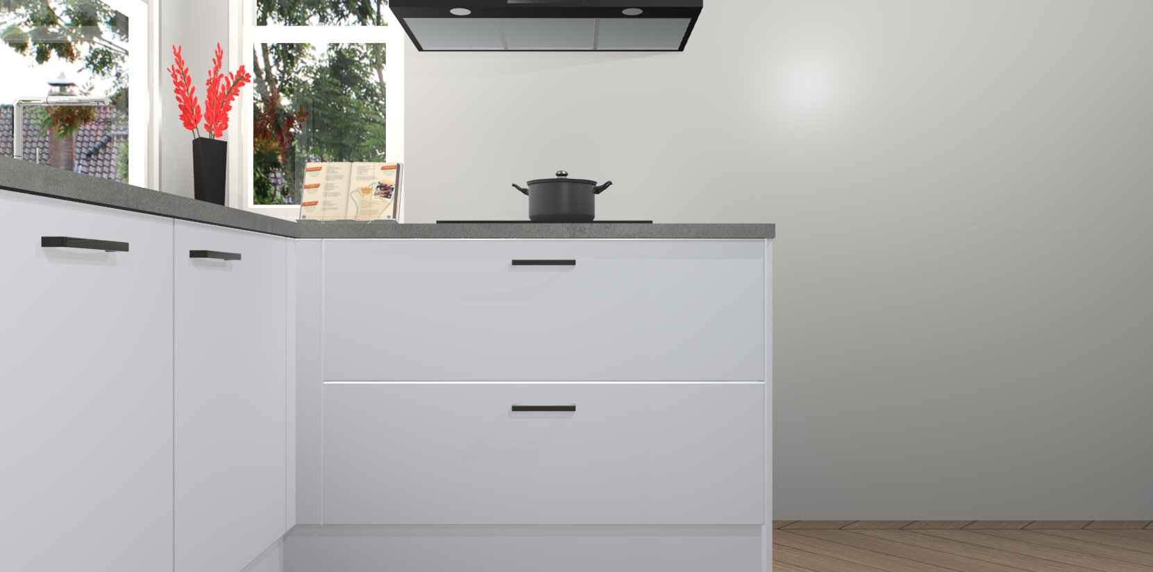 In deze box zijn alle kleuren verzameld van de deuren en werkbladen. Vraag de gratis kleurenbox aan en kijk thuis rustig verder!