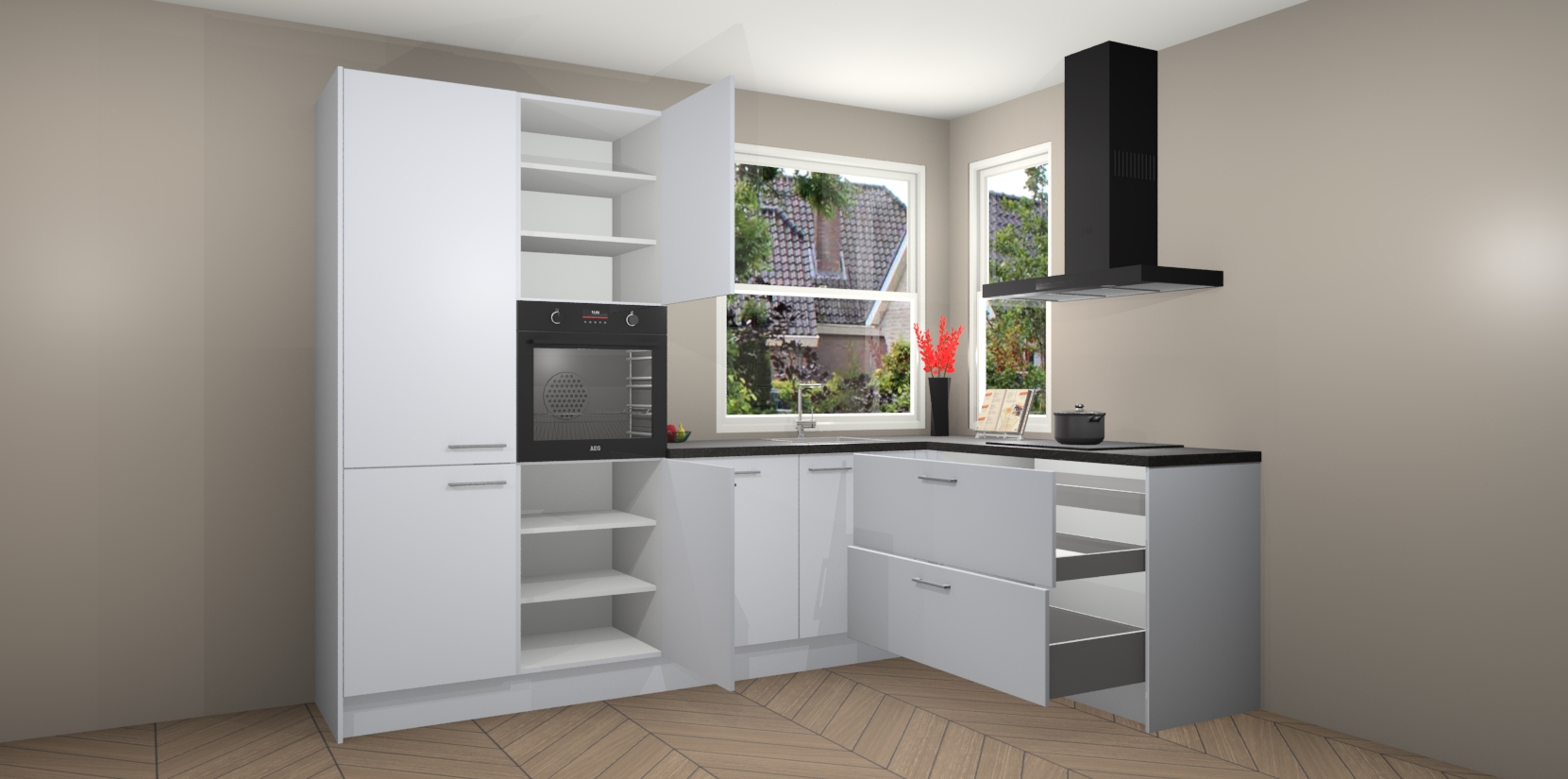 Het is tijd om halsoverkop verliefd te worden op uw droomkeuken, en de Sneeuwwitte keuken Kotor is precies wat u nodig heeft! Met een moderne, tijdloze constructie en een mix van prachtig design zal deze luxe hoekkeuken zeker opvallen. Maar laat de schoonheid u niet afleiden van de indrukwekkende functies - want onder dit alles schuilt een onovertroffen hoeveelheid lekkers!