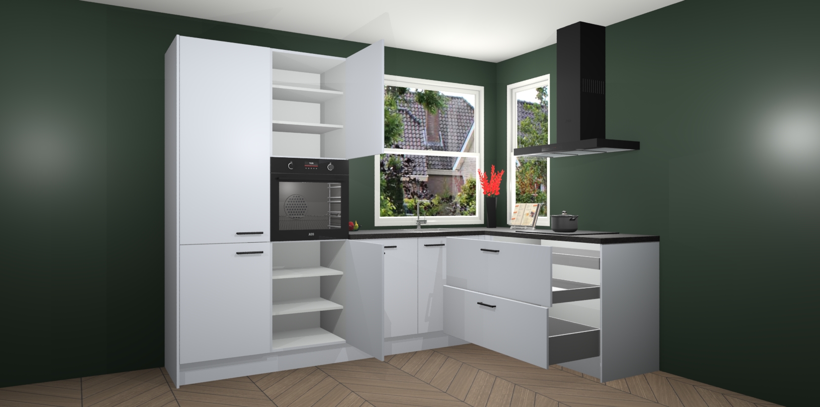 Het is tijd om halsoverkop verliefd te worden op uw droomkeuken, en de Sneeuwwitte keuken Kotor is precies wat u nodig heeft! Met een moderne, tijdloze constructie en een mix van prachtig design zal deze luxe hoekkeuken zeker opvallen. Maar laat de schoonheid u niet afleiden van de indrukwekkende functies - want onder dit alles schuilt een onovertroffen hoeveelheid lekkers!