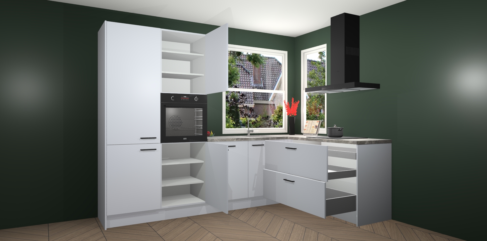 Het is tijd om halsoverkop verliefd te worden op uw droomkeuken, en de Sneeuwwitte keuken Kotor is precies wat u nodig heeft! Met een moderne, tijdloze constructie en een mix van prachtig design zal deze luxe hoekkeuken zeker opvallen. Maar laat de schoonheid u niet afleiden van de indrukwekkende functies - want onder dit alles schuilt een onovertroffen hoeveelheid lekkers!