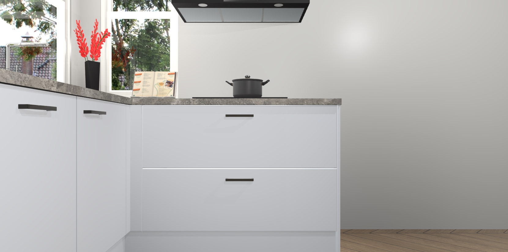 In deze box zijn alle kleuren verzameld van de deuren en werkbladen. Vraag de gratis kleurenbox aan en kijk thuis rustig verder!