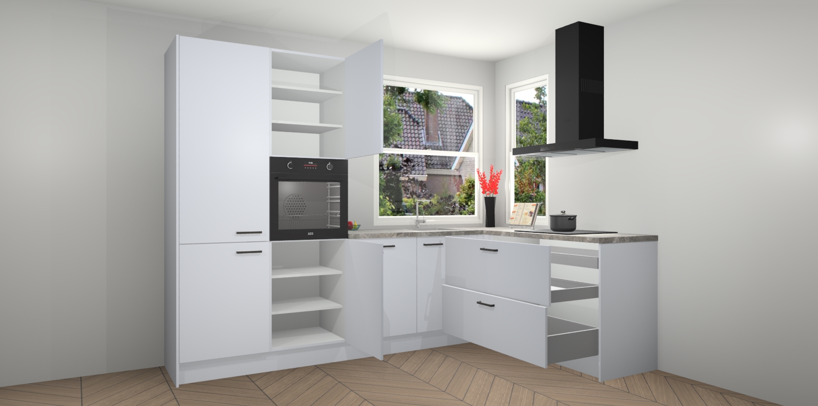 Het is tijd om halsoverkop verliefd te worden op uw droomkeuken, en de Sneeuwwitte keuken Kotor is precies wat u nodig heeft! Met een moderne, tijdloze constructie en een mix van prachtig design zal deze luxe hoekkeuken zeker opvallen. Maar laat de schoonheid u niet afleiden van de indrukwekkende functies - want onder dit alles schuilt een onovertroffen hoeveelheid lekkers!