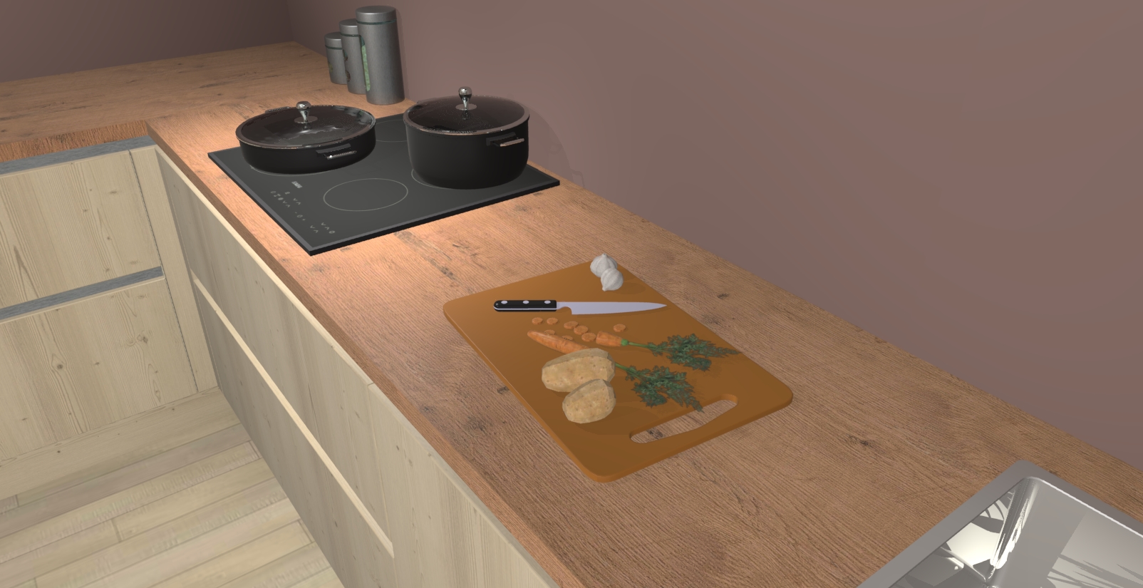 Inclusief plinten, stelpoten en werkblad