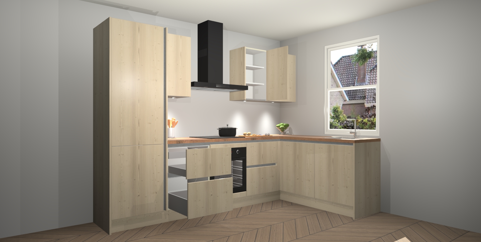 Inclusief plinten, stelpoten en werkblad