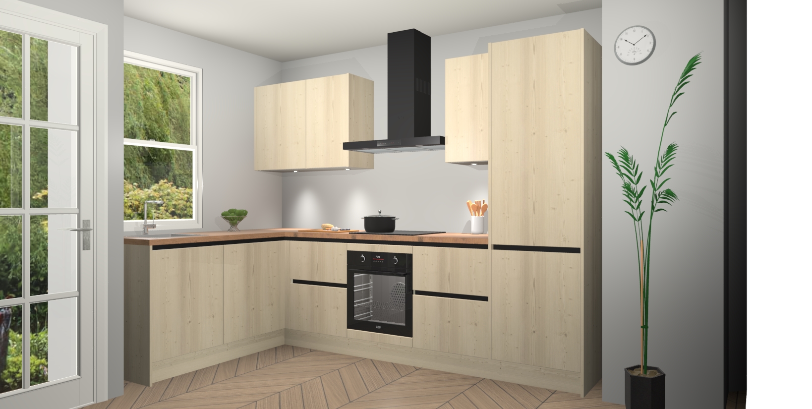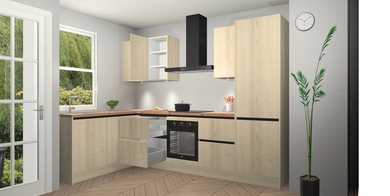 U hoeft zich ook geen zorgen te maken over een gebrek aan opbergruimte, want deze keuken heeft voldoende opbergmogelijkheden zowel boven als onder het aanrecht. Om het leven nog makkelijker te maken, wordt deze moderne hoekkeuken geleverd met 5 ingebouwde apparaten, waaronder een oven, inductiekookplaat, afzuigkap, vaatwasser en koelkast, zodat u in een mum van tijd klaar bent voor actie!