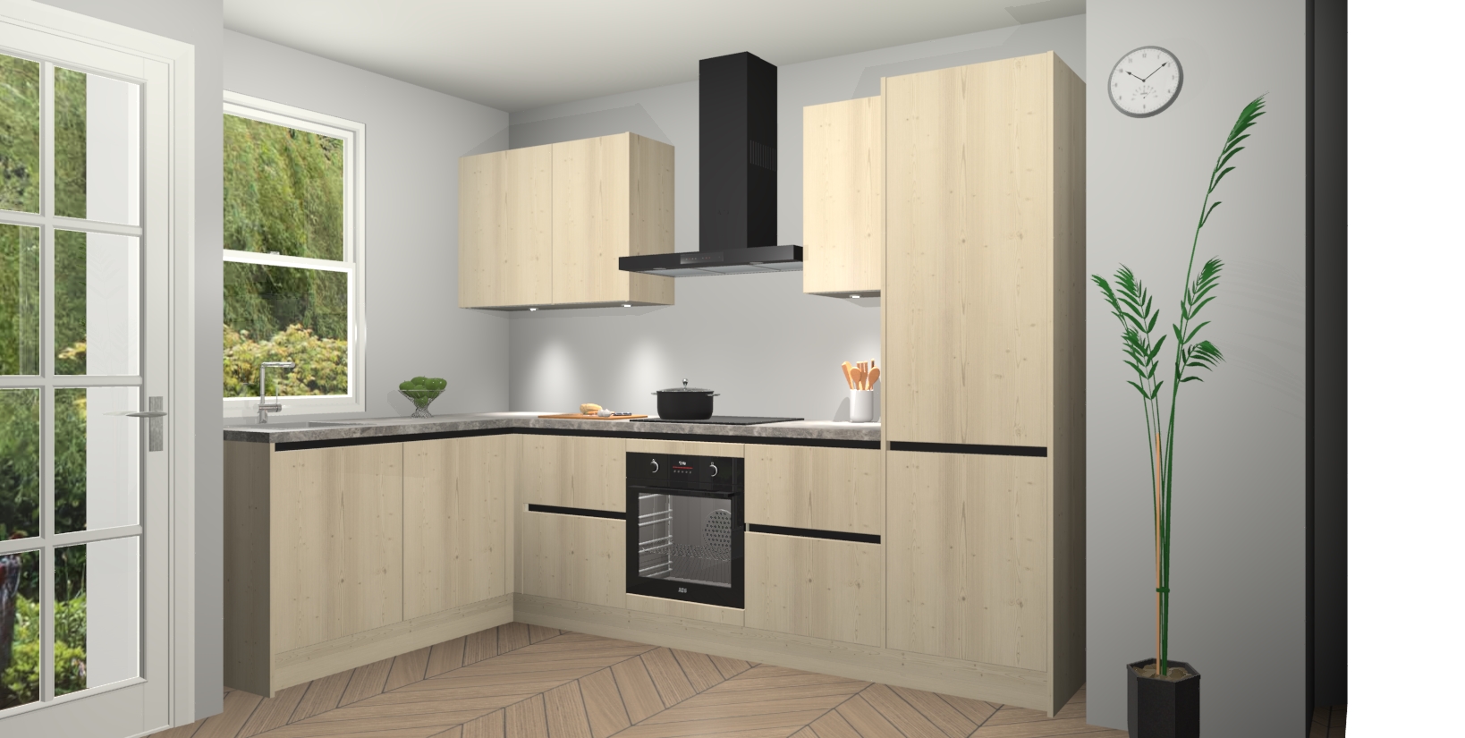 U hoeft zich ook geen zorgen te maken over een gebrek aan opbergruimte, want deze keuken heeft voldoende opbergmogelijkheden zowel boven als onder het aanrecht. Om het leven nog makkelijker te maken, wordt deze moderne hoekkeuken geleverd met 5 ingebouwde apparaten, waaronder een oven, inductiekookplaat, afzuigkap, vaatwasser en koelkast, zodat u in een mum van tijd klaar bent voor actie!
