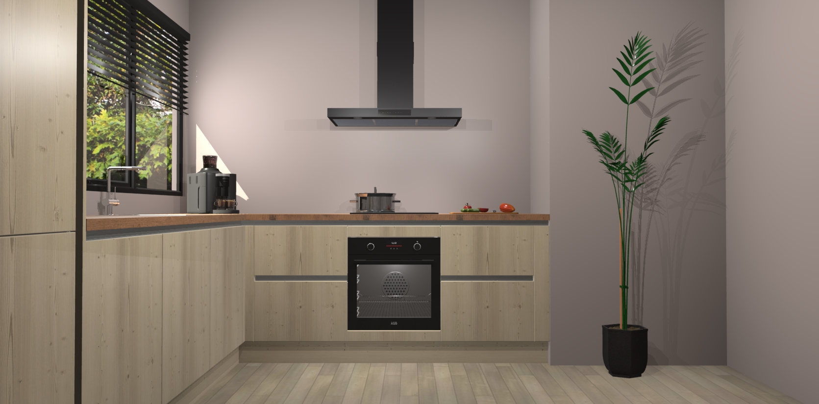 Met een modern, tijdloos design en ruime opslagruimte, zult u zich in no-time thuis voelen in uw nieuwe keuken. Uw leven wordt eenvoudiger met de soft-close deuren die voor het ultieme stille comfort zorgen - geen geluid dat u stoort terwijl u kookt. Ook is de keuken voorzien van 5 ingebouwde apparaten: een oven, inductie kookplaat, afzuigkap, vaatwasser en koelkast. Deze kunnen gemakkelijk na bestelling worden bijgewerkt naar AEG - waardoor uw luxe ervaring compleet is.