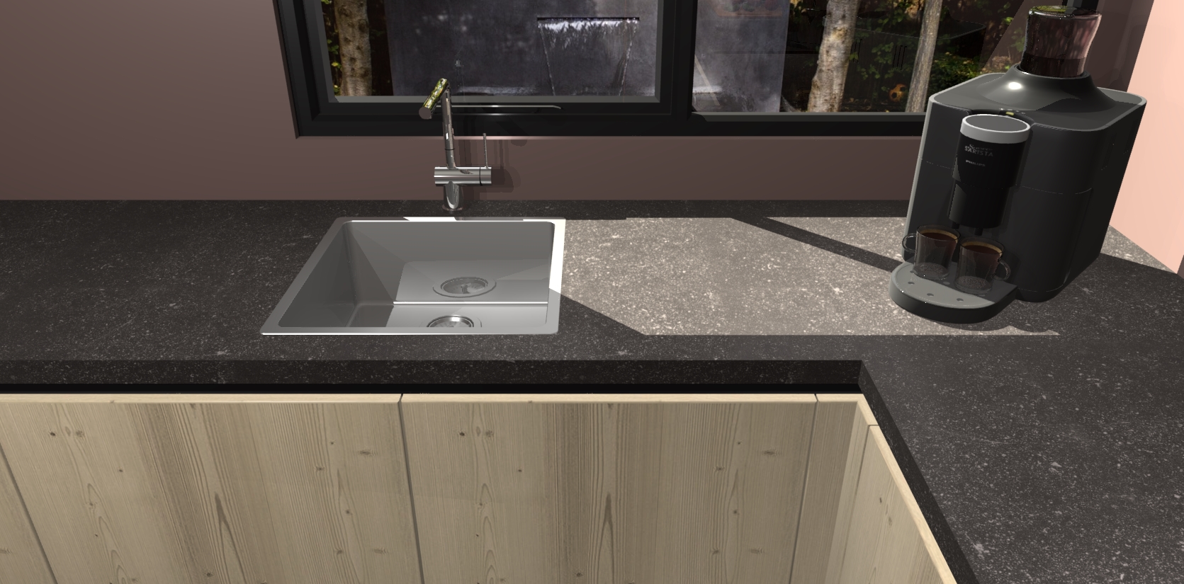 - Bij een hoekwerkblad zijn de hoeken in gevreesd en op maat gemaakt