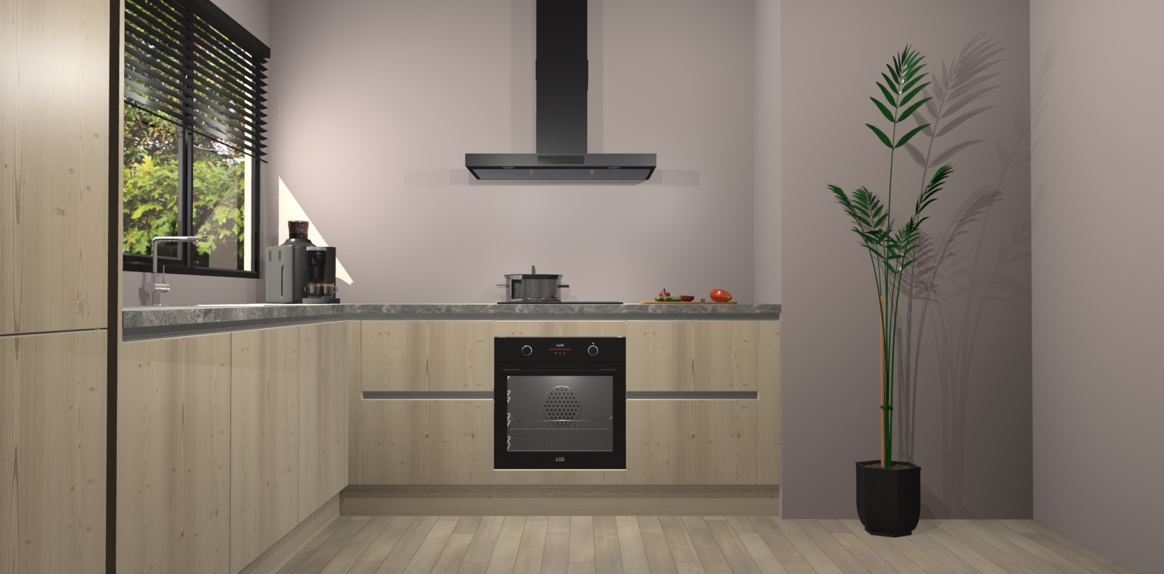 Met een modern, tijdloos design en ruime opslagruimte, zult u zich in no-time thuis voelen in uw nieuwe keuken. Uw leven wordt eenvoudiger met de soft-close deuren die voor het ultieme stille comfort zorgen - geen geluid dat u stoort terwijl u kookt. Ook is de keuken voorzien van 5 ingebouwde apparaten: een oven, inductie kookplaat, afzuigkap, vaatwasser en koelkast. Deze kunnen gemakkelijk na bestelling worden bijgewerkt naar AEG - waardoor uw luxe ervaring compleet is.
