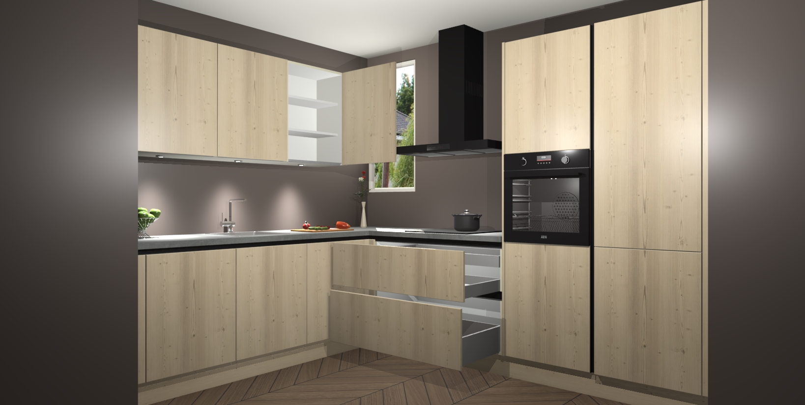 De ruime opbergruimte van dit model maakt het bereiden van voedsel en het gebruik van apparaten snel en gemakkelijk. Het beste van alles is dat het wordt geleverd met vijf inbouwapparaten: een oven, inductiekookplaat, afzuigkap, vaatwasser en koelkast - die allemaal gemakkelijk kunnen worden opgewaardeerd naar AEG na aankoop. Wat de gemaksfactor nog groter maakt, is het feit dat alle cabines voorgemonteerd worden geleverd, zodat u er meteen mee aan de slag kunt!