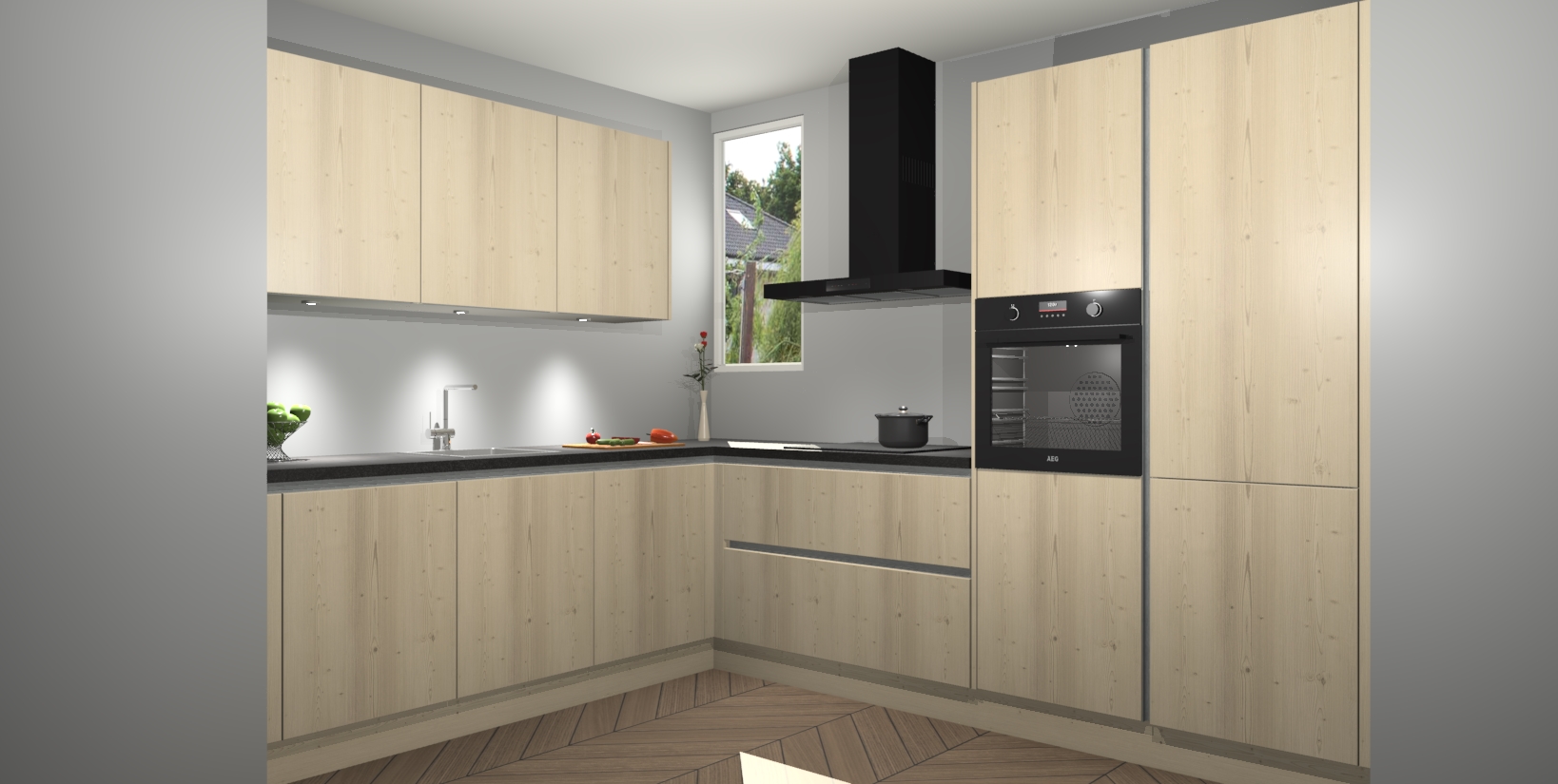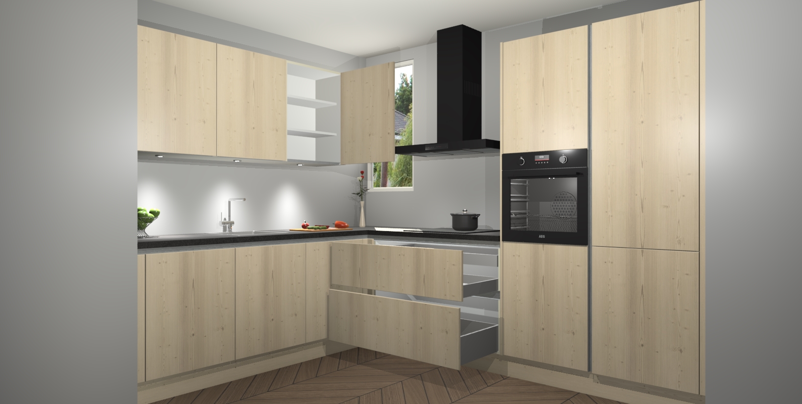 De ruime opbergruimte van dit model maakt het bereiden van voedsel en het gebruik van apparaten snel en gemakkelijk. Het beste van alles is dat het wordt geleverd met vijf inbouwapparaten: een oven, inductiekookplaat, afzuigkap, vaatwasser en koelkast - die allemaal gemakkelijk kunnen worden opgewaardeerd naar AEG na aankoop. Wat de gemaksfactor nog groter maakt, is het feit dat alle cabines voorgemonteerd worden geleverd, zodat u er meteen mee aan de slag kunt!