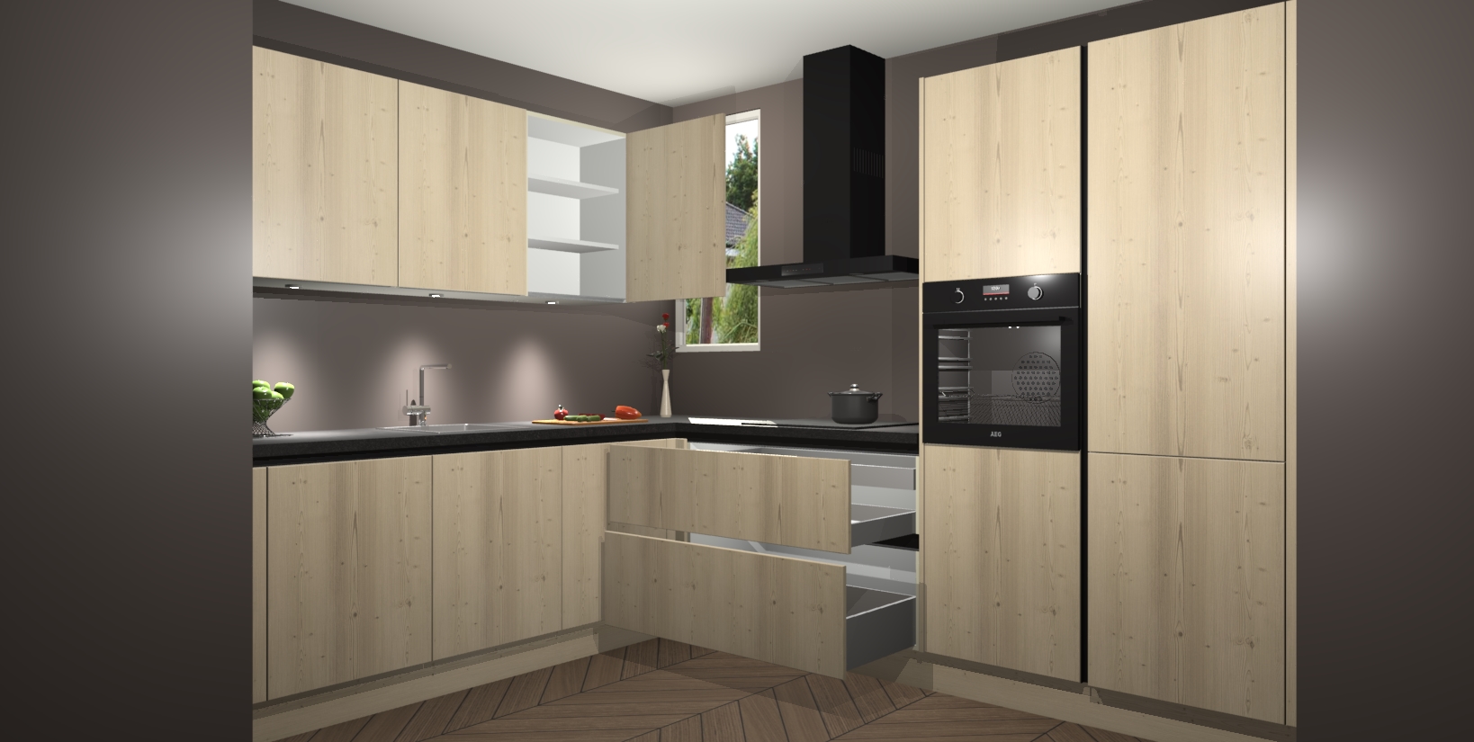 De ruime opbergruimte van dit model maakt het bereiden van voedsel en het gebruik van apparaten snel en gemakkelijk. Het beste van alles is dat het wordt geleverd met vijf inbouwapparaten: een oven, inductiekookplaat, afzuigkap, vaatwasser en koelkast - die allemaal gemakkelijk kunnen worden opgewaardeerd naar AEG na aankoop. Wat de gemaksfactor nog groter maakt, is het feit dat alle cabines voorgemonteerd worden geleverd, zodat u er meteen mee aan de slag kunt!