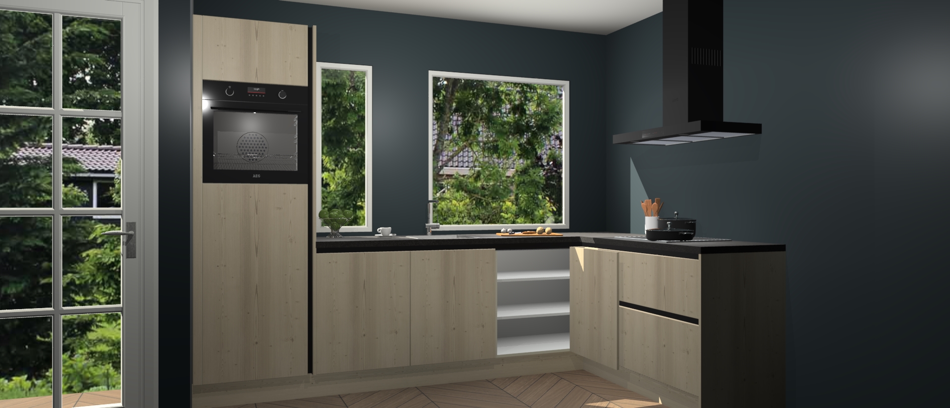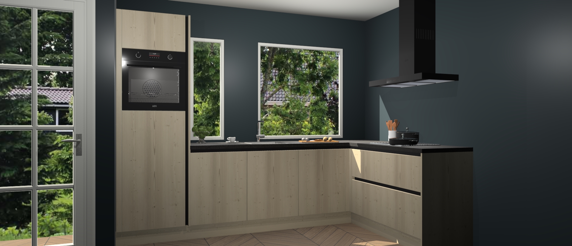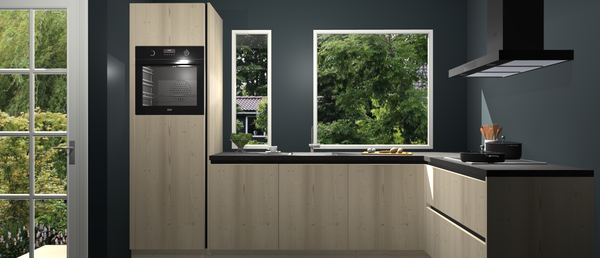 Deze complete keuken wordt geleverd met 5 inbouwapparaten: een oven, inductiekookplaat, afzuigkap, vaatwasser en koelkast.  De toestellen kunnen na bestelling ook gemakkelijk worden opgewaardeerd naar AEG. Bovendien is elke deur in deze keuken voorzien van handige softclose technologie voor eenvoudig gebruik! Als een leuke toevoeging zit in deze keuken ook een carrousel, zo hoef je niet meer de hoek in duiken om iets te pakken.
